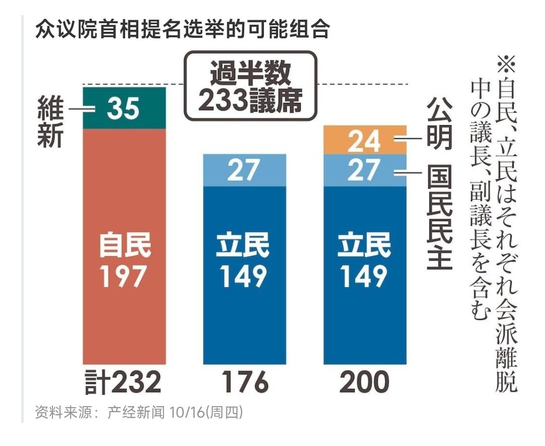 10月17日,日本的首相选举峰回路转,高市早苗答应了日本维新会“削减10%议员规