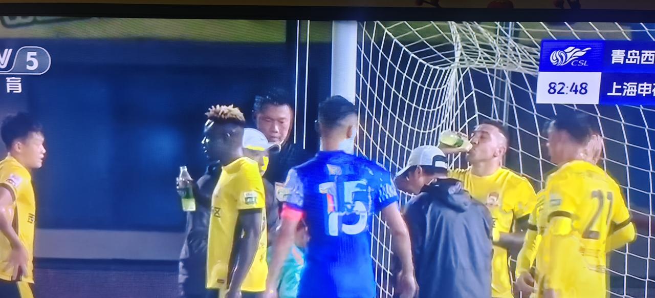 青岛西海岸与上海申花的比赛中,上半场西海岸便被罚下两人。开场后,西海岸借助定位球率先破门得分。然而,很快西海岸在禁区内犯规,被判罚点球,吴曦主罚一蹴而就,将比分扳成1比1平。 随后在第37分钟,西海岸的孙捷飞踹于汉超,被红牌罚下。第45分钟,西海岸的张呈栋因不满裁判判罚,先被出示黄牌,后又出言不逊,被裁判直接红牌罚下。至此,半场比赛双方1比1战平。 下半场西海岸以9人迎战申花11人。比赛进行到第57分钟,申花队利用角球机会,由汉超头球顶入制胜一球。此后,由于天气持续下雨,申花队无心恋战,最终以2比1战胜青岛西海岸。