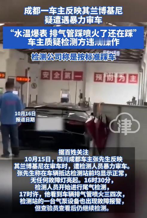 四川成都,一男子开着近1000万元的跑车去年审,结果被工作人员把排气管给踩冒火了