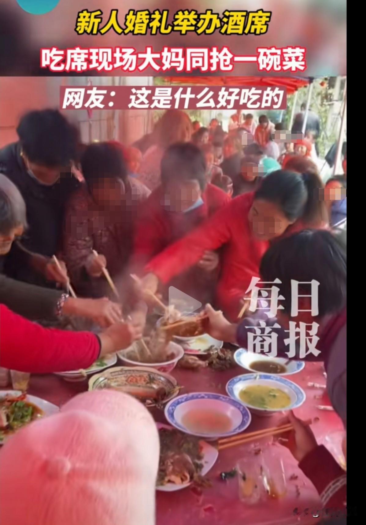 真的很费脑子,我一直想不明白,吃酒席的时候,好好的一桌菜,为什么一上菜,就被抢光?自己盘子里端的乱七八糟的,这怎么吃啊!为什么就不能和正常吃饭一样,吃一筷子,再夹一筷子呢?你看这画面,只要菜一上来,大家就一起抢,然后使劲往自己盘子里倒。这样的酒席意义在哪里?不过,我是从来没有遇见过这种情况,真的很难理解。