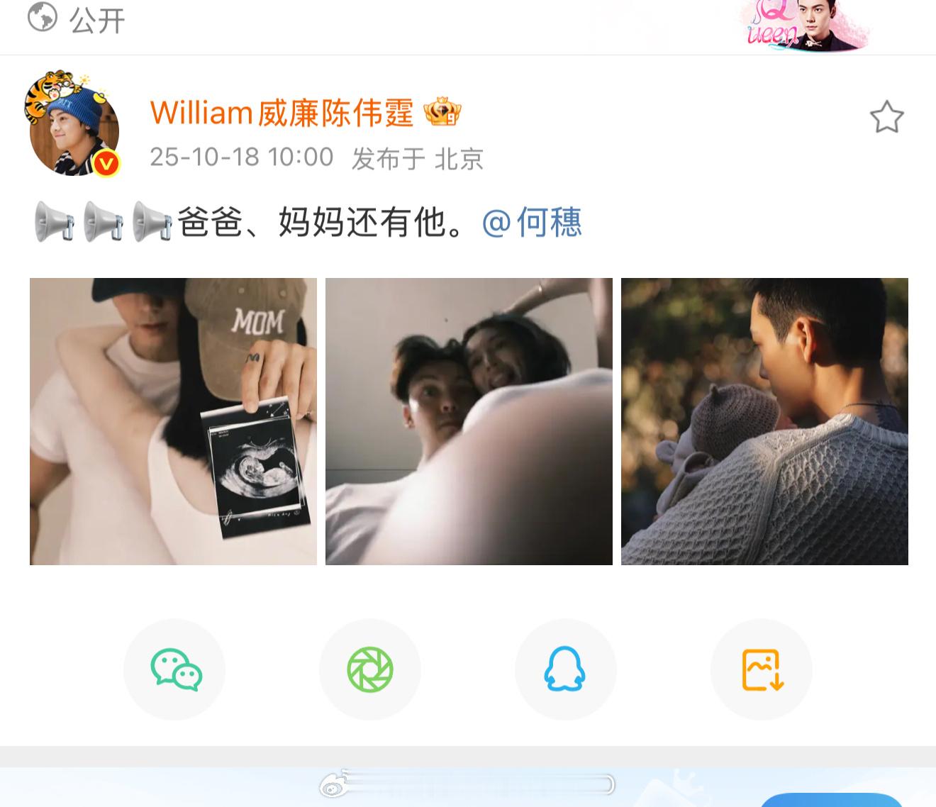 陈伟霆何穗官宣生子了,恭喜恭喜🎉