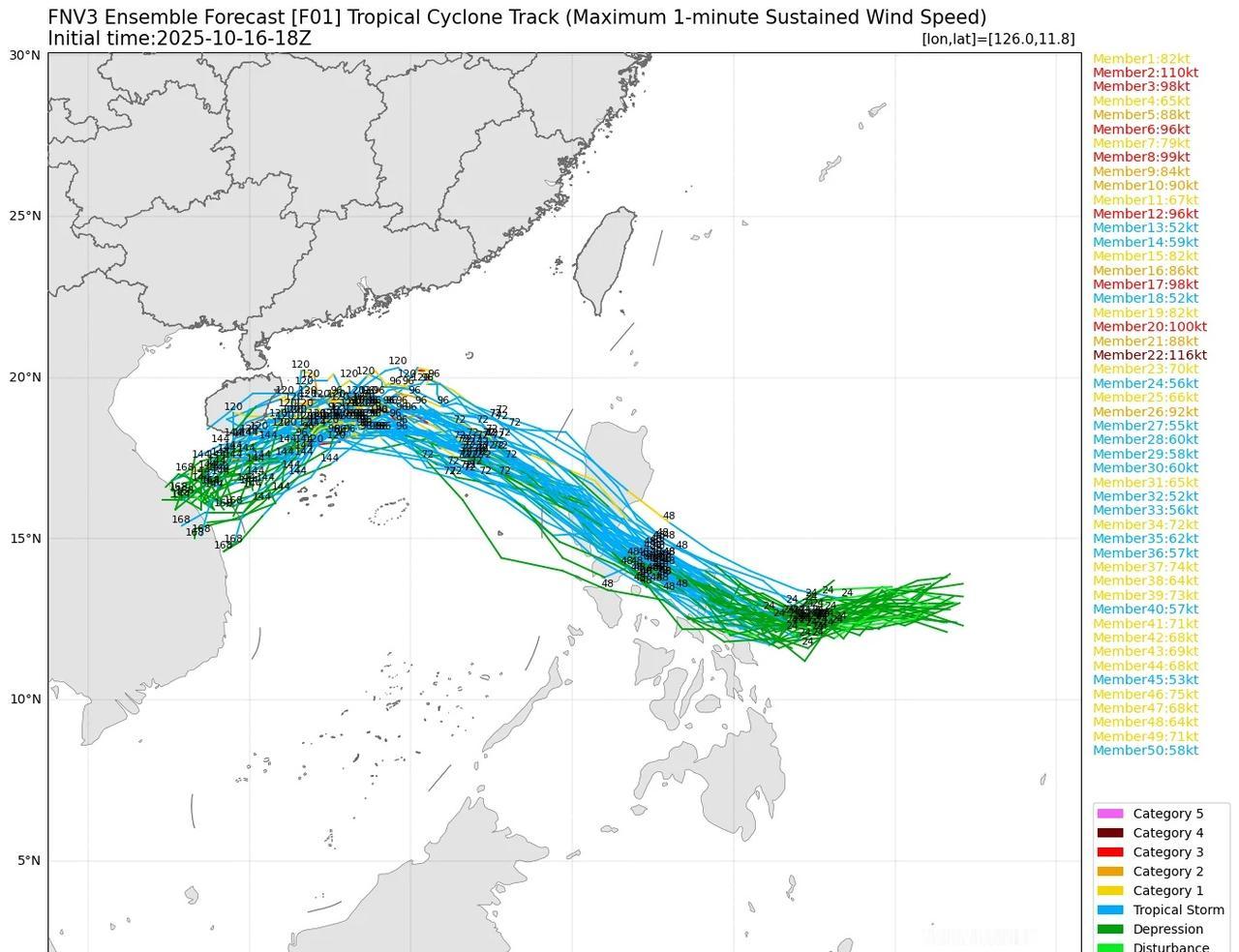 台风风神即将生成,登陆影响海南 今天凌晨日本气象厅对菲律宾以东洋面台风胚胎96w,发布GW,升格热带低压。未来先西行登陆菲律宾,之后进入南海,进入南海之后受南下冷空气影响,路径往西南偏西走。根据AI模型歌谷fnv3最新预报来看,略有北调,已经基本确定。未来强度有所调弱,最强强热带风暴级或台风级,22~23日可能在登陆或擦过海南南部,强度逐渐减弱热带低压级别靠近登陆越南。 天气 台风