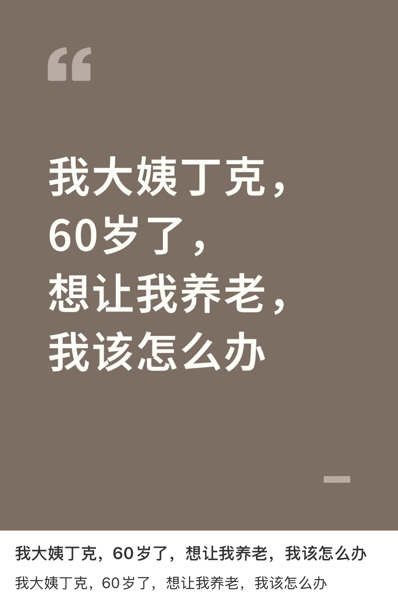 我大姨丁克,60岁了,想让我养老,我该怎么办?[摊手]