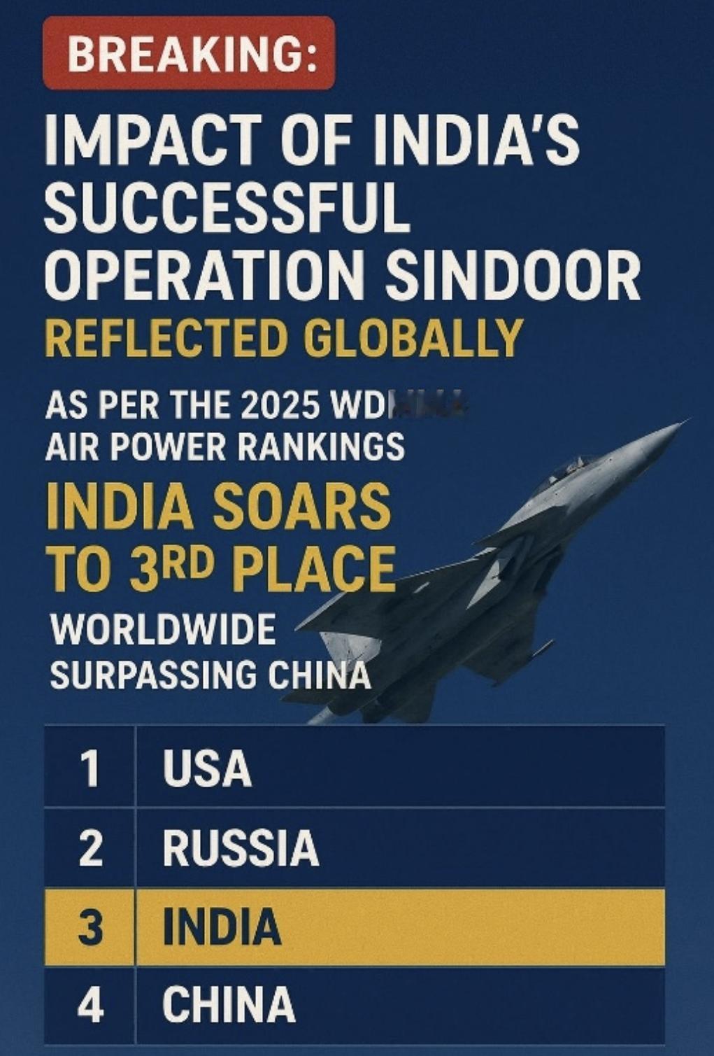 终于知道,为什么印度空军,能够排在第三了。 第一是美国,因为全是美式装备。 第二是俄罗斯,因为全是俄式装备。 那么,既有俄式装备,又有美式装备的印度,那一定是第三了。 更何况,除了美式和俄式,印度还有法国的战机,以色列的无人机。 另外,不要忘记,印度还有自研的光辉战机。 所以,印度排在第三,也算是实至名归。