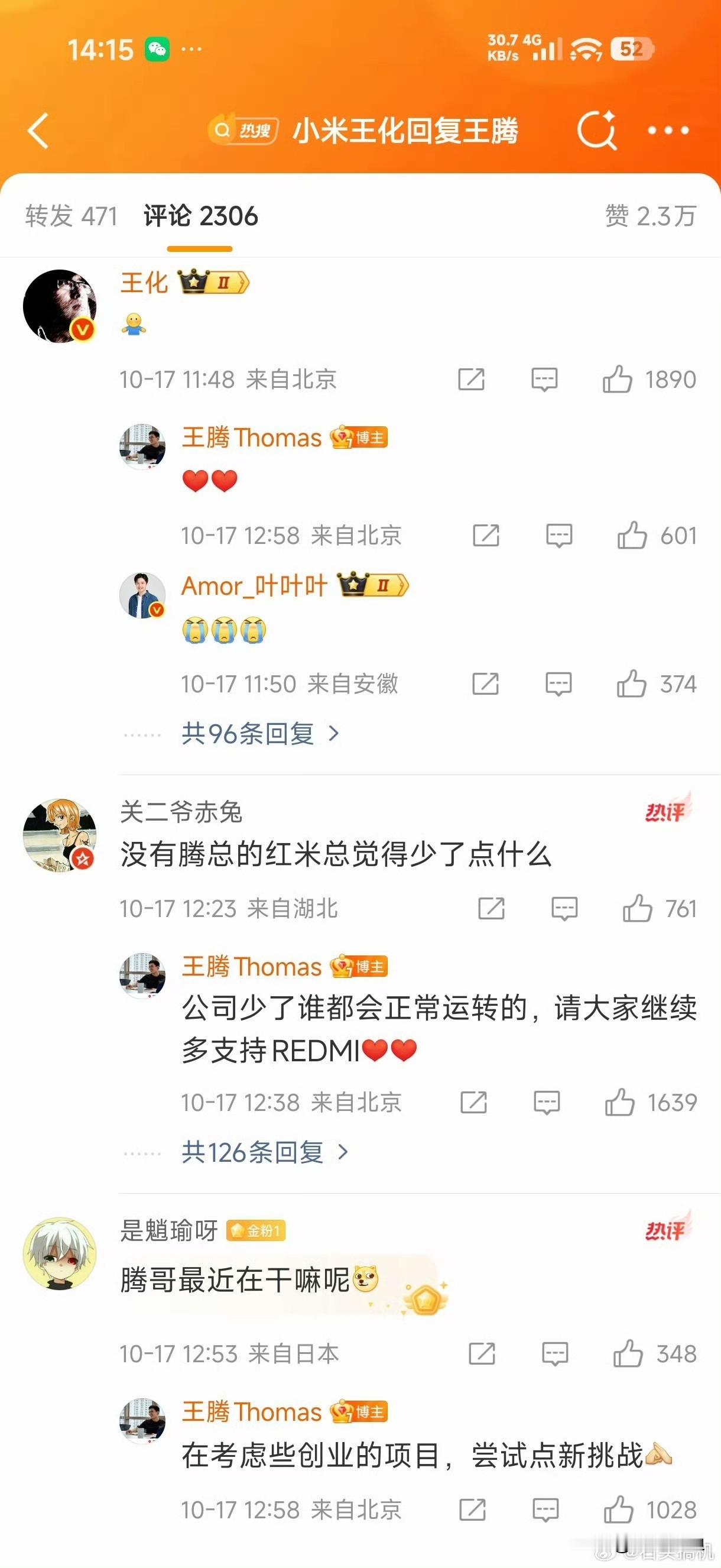 王腾之前被小米炒了鱿鱼,因为泄密违规啥的,挺严肃的事儿。但昨天他居然还在微博给红米K90 Pro Max打call,说这是最强K系列,团队花了大心血打造的,期待满满。 网友调侃是“遗作”,他还幽默回怼。更逗的是,小米高管王化也跑来拥抱互动。我看啊,王腾对这手机是真的有感情,离职了还卖力宣传,有点拼命三郎的意思。双方互动挺和谐,惺惺相惜的味儿出来了。可惜,闹过矛盾,他还能回小米吗?悬得很!