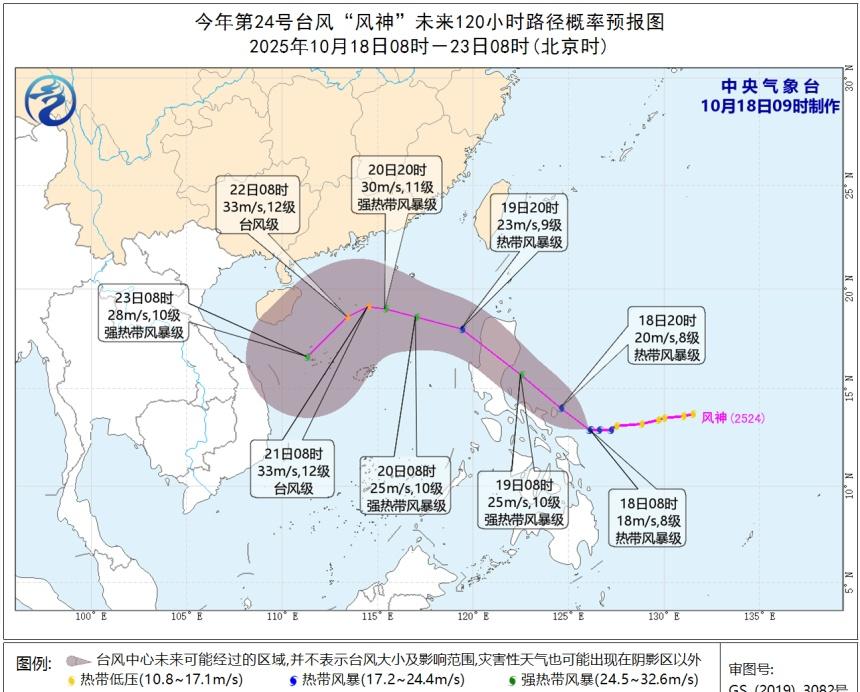 今天凌晨菲律宾东侧的低压发展成为今年24号台风风神。21日前,海温较高,垂直风切变较小,利于强度增强,不过可能有个小波折,穿越吕宋岛的时候,强度略有减弱。登陆前为强热带风暴,穿过吕宋岛后为热带风暴。 目前看在21日可能达到巅峰强度(台风级),之后因为垂直风切变加大,海温下降,冷空气进入,中层湿度也下降,强度减弱。并在低空冷空气压制下向西南折,因此大概率不会登陆我国。但风雨影响不可忽视。 因为冷空气和台风结合,台湾海峡和南海北部海面的风会很大。明后两天上述海域风力会增强到8-10级,阵风可达11-12级。此外台湾岛从19日夜间开始,可能连续出现强降雨,对应台风北侧东南风+冷空气东北风形成共伴效应,叠加地形抬升。