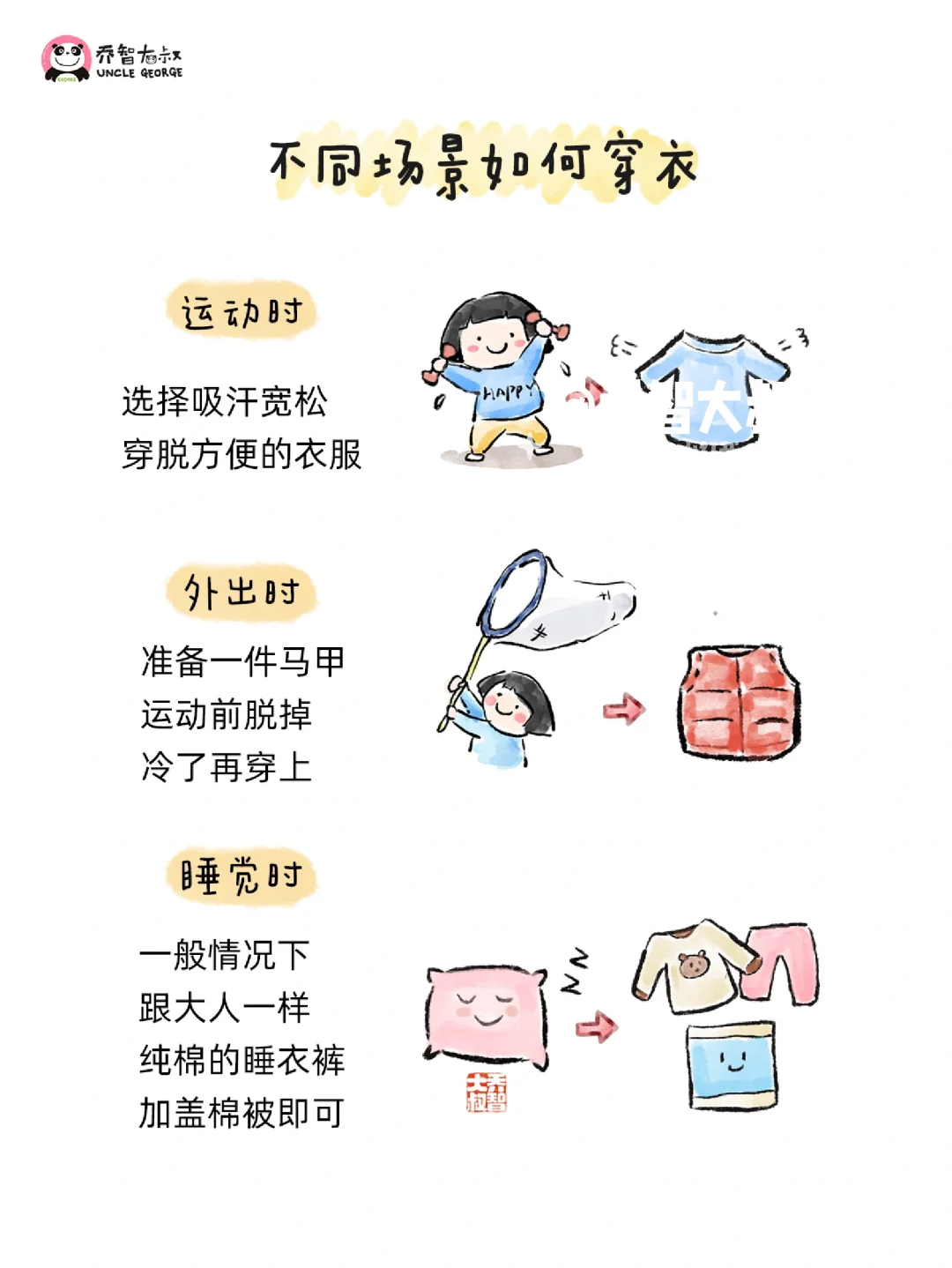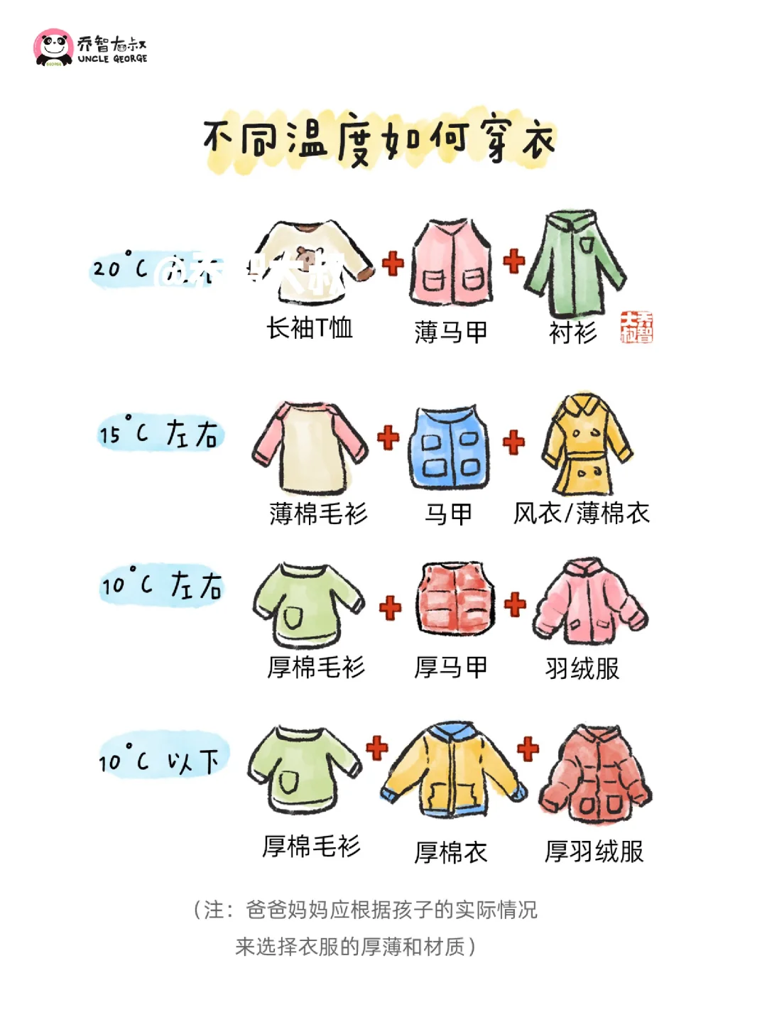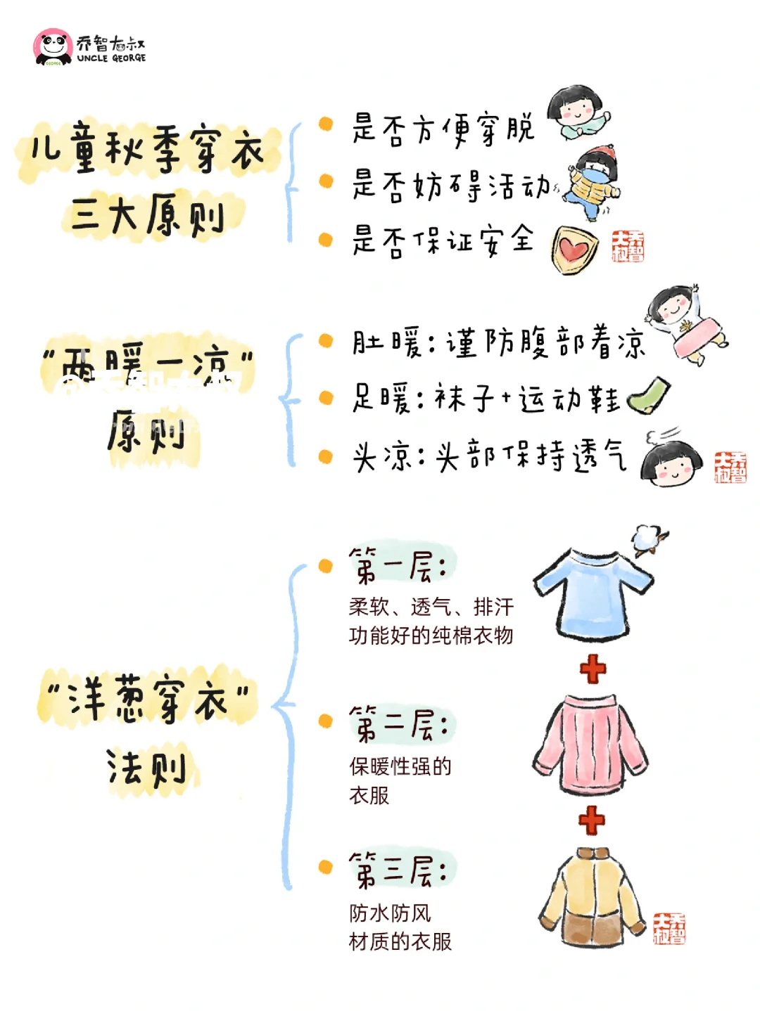 天气一日凉过一日 很多家长担心孩子着凉 往往会给孩子包裹的严严实实 可错误的穿衣方式不仅更容易感冒 还会给幼儿带来安全隐患 秋天给儿童穿衣和选衣 怎样做才能既保暖安全又能减少生病机率呢 每个孩子体质不同 对环境的适应能力也有差异 家长要从孩子的实际需求出发 灵活应用穿衣准则 除正确穿衣之外 健康的饮食和作息 适当的体育锻炼 都会让孩子身体强健,少生病