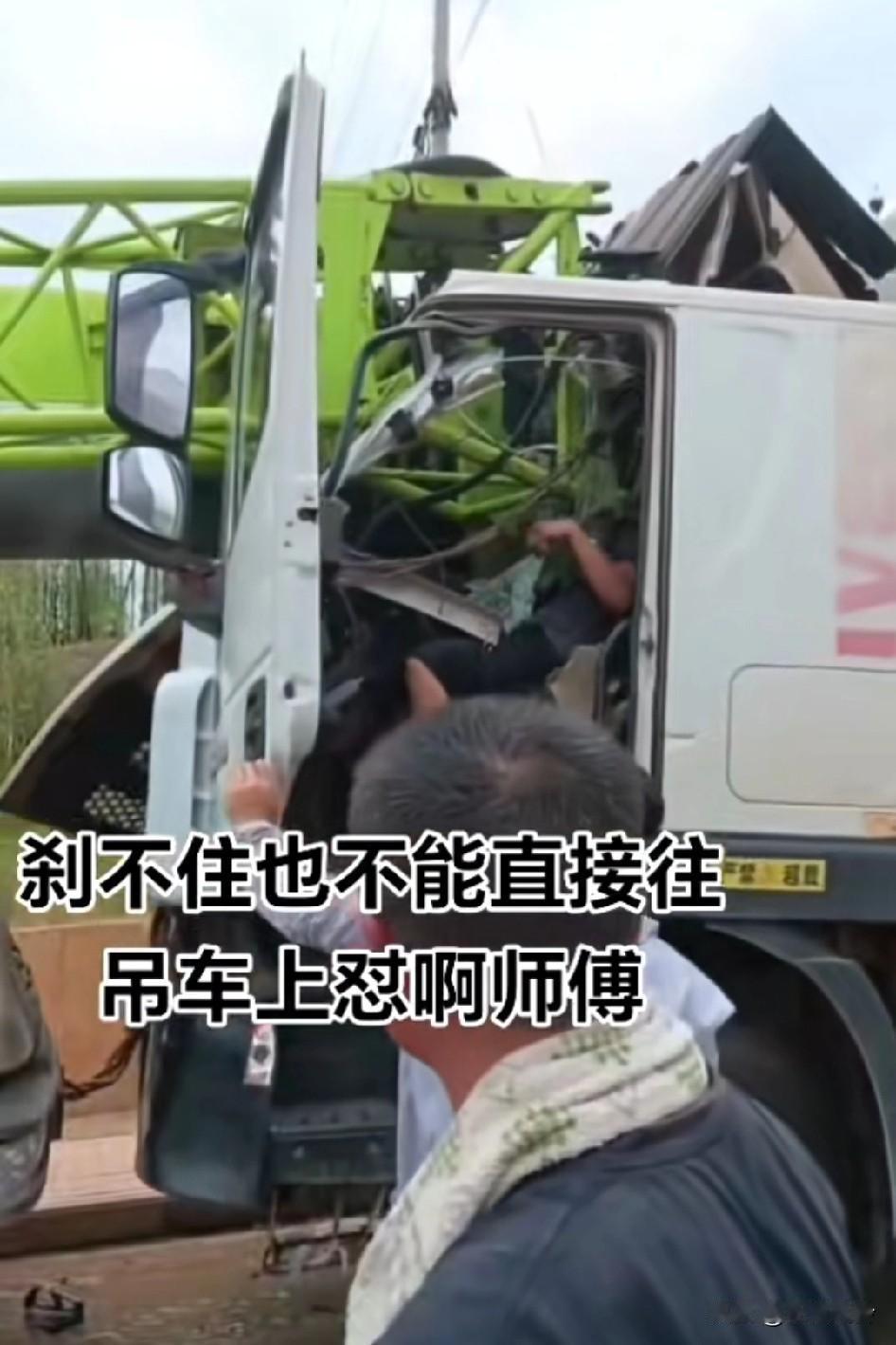 刹不住也不不能直接往吊车上怼啊!师傅,手还能动,应该还活着 还有救吗 受伤了应该没死看样子意识清晰。吊车本来就重,纯纯大铁疙瘩,前面自带勾勾拳,后面自带铁盾。别的车都是空心的,吊车差不多算半实心的,副臂在家放着,什么时间干活需要副臂工况或者审车什么时间装上 打瞌睡了嘛?打不住也不能这样穿上去啊,直接打打一盘子就过去了,那就翻车也好,不至于往自己身上怼呀。