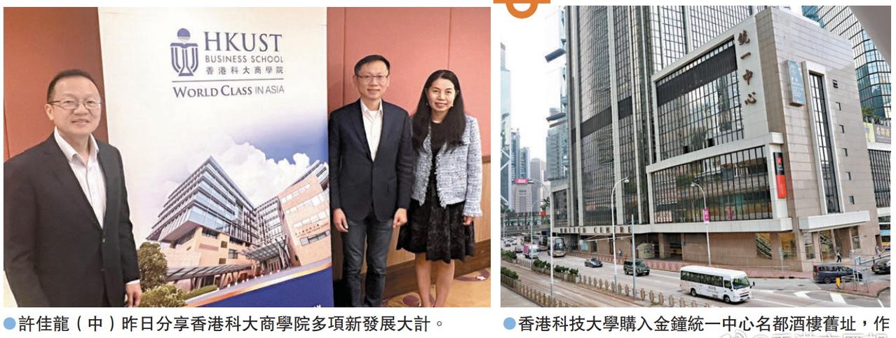 【港科大进驻金钟添便利 新教学设施明年中启用】 香港科技大学以3.54亿元购入金钟统一中心4楼全层,项目由该校商学院主导,将设为学院位于中区核心地段的新教学设施。港科大商学院署理院长许佳龙昨日在接受香港文汇报访问时,进一步分享该设施的规划及进展,并认为各大学积极购买物业以扩展教学空间的举措,正突显香港重视发展成为国际教育枢纽。港科大進駐金鐘添便利 新教學設施明年中啟用