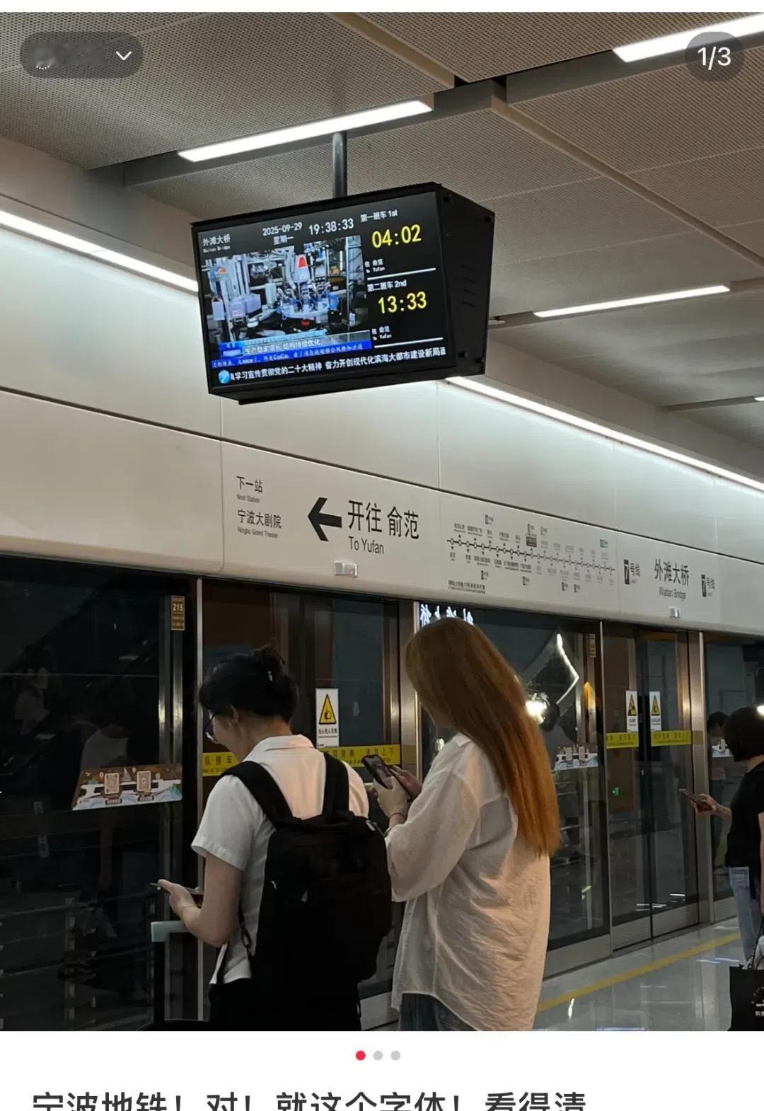 “今天一进站,眼睛都亮了!”“这个改得真不错!”“完美,远远地就能看清了!”近日,在各社交平台上,不少乘坐宁波地铁的市民纷纷晒图,点赞宁波地铁在全线网站台试点的新版“乘客信息显示屏”。鉴于试点反响良好,新版显示屏进一步扩大试点范围,目前已覆盖全线网所有地下车站站台。(宁波地铁运营)
