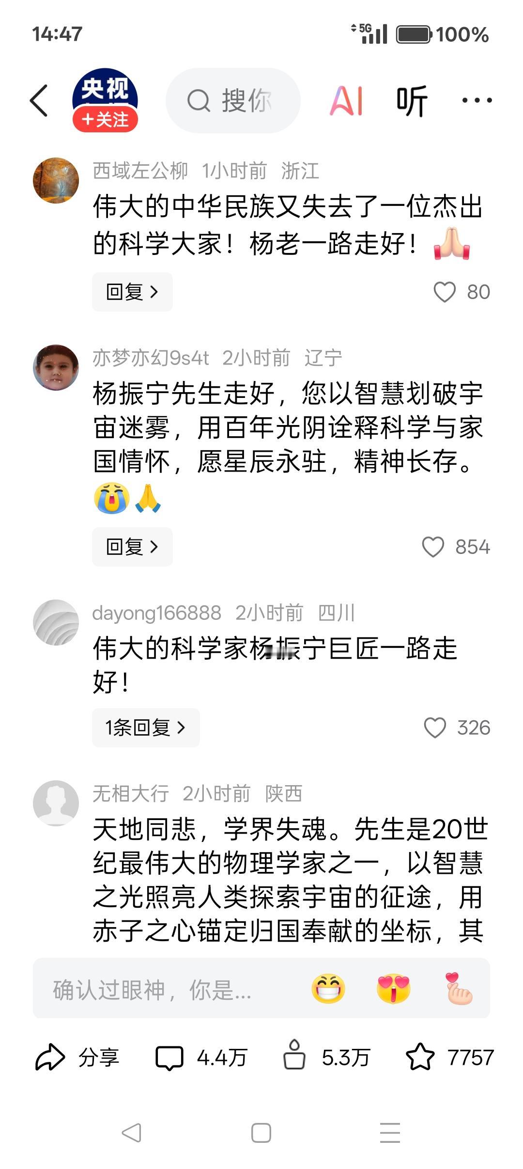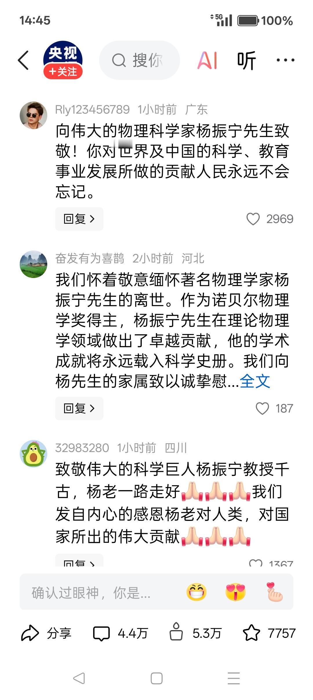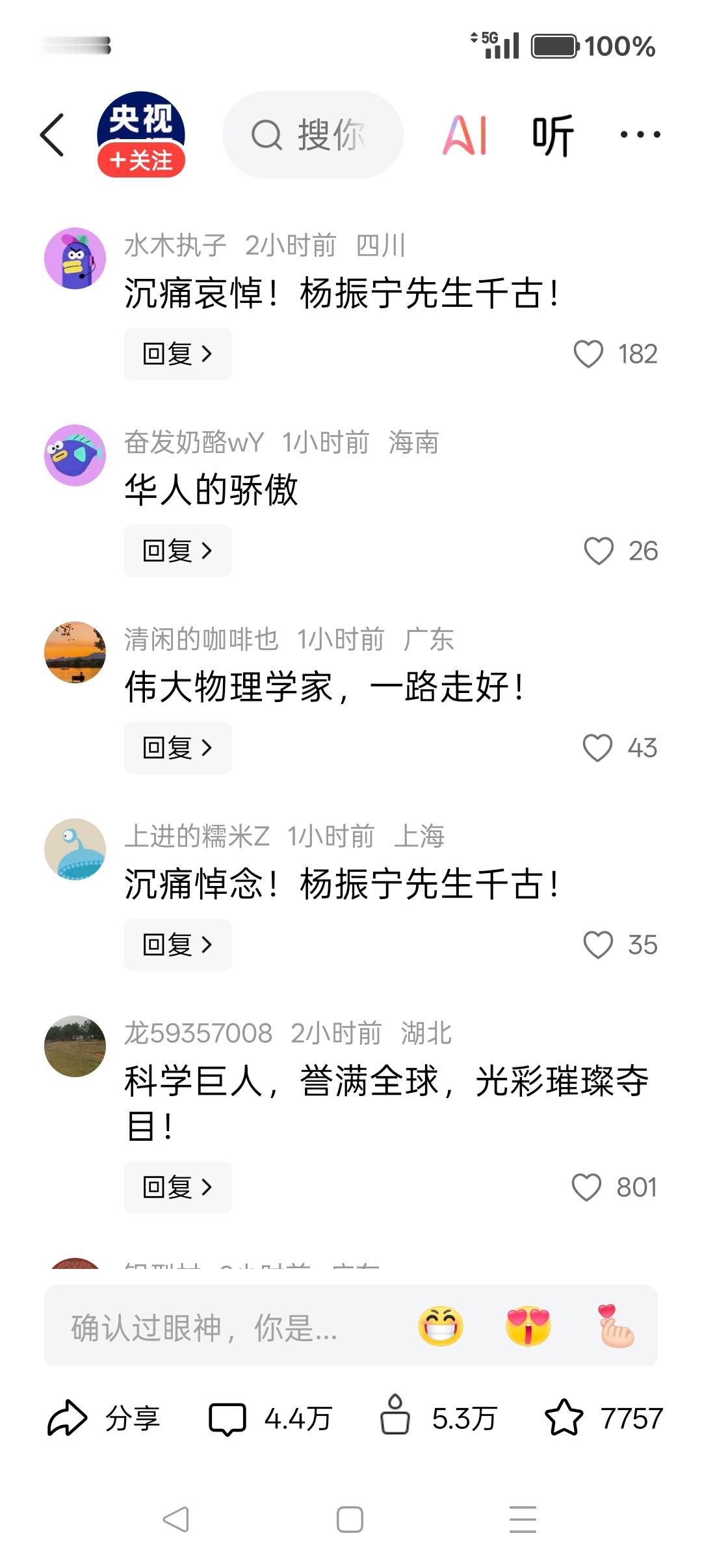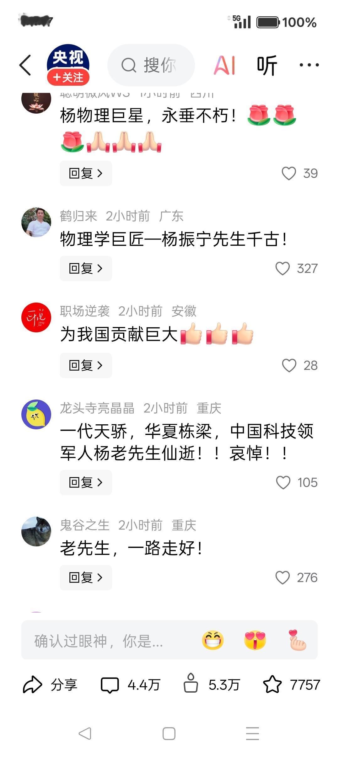 杨振宁老先生病逝,是中华民族不可估量的损失,他的一生是爱国、光荣、伟大、杰出、辉煌、奉献的一生。 杨老是第一个斩获代表世界科学最高水平诺贝尔奖的中国人,这意义特别重大。在他获奖之前,西方人对黄种人的歧视,尤其看不起中国人。 当时的西方社会,黄种人被视为劣等种族。中国人在海外常常遭遇不平等待遇,比如在就业、教育、生活等方面受到限制和歧视。 杨振宁赴美留学时,中国留学生们被安排在运兵船最下层甲板舱,美国士兵对他们态度轻蔑,常常言语侮辱和种族歧视 。他在美国买房时,也因为是中国人被房主拒绝 。 不仅如此,由于从鸦片战争开始,中国在长达一百多年里,被西方国家欺辱、宰割、掠夺,社会贫困落后,就连中国人自己都有一种不如西方人的自卑心理,盲目地认为外国的才是更好的。 当杨老获诺奖时,中国人惊讶地发现我们其实也并不比西方人差,西方人能攀登科技高峰,我们中国人也行。这样的认知改变,比诺奖本身更重要! 如今杨老病逝,网友们都纷纷表达深切哀思和沉痛悼念,对他的一生作出高度评价。他的不朽功绩绝不是极个别人的诽谤、污蔑、贬低、攻击、辱骂、恶意调侃所能够抹杀掉的,事实胜于诋毁。这就是公道自在人心。 杨老永垂不朽! 附: 杨老加入美国国籍的原因: 1. 科研需求:50年代中国科研基础薄弱,美国是物理研究中心,留美是学术突破的必然选择。 2. 时代限制:中美关系紧张、签证受限难即时归国,入美籍可获稳定科研身份与资源。 3. 情怀未改:入美籍只是为了科研便利,始终以华人身份自豪,从未割裂跟祖国的情感。 杨老于2003年正式回国,到他病逝时已经22年之久。虽然已80岁高龄,但是他依旧发光发热,为国家做出了常人难及的诸多重大贡献。回国后主要做了以下事情: 1. 推动高等教育与人才培养:2003年回国定居清华后,杨振宁把高等研究院的发展作为自己的新事业,2004年,82岁高龄的他亲自为本科新生讲授《大学物理》课程。2023年11月,他提出的清华大学物理人才培养“攀登计划”正式启动。 2. 推动学科建设:他以清华大学的名义发表了30多篇论文,倾力推动清华大学冷原子物理、凝聚态物理、密码学等基础学科的发展,将清华大学物理系提升至世界级水平。 3. 募集资金支持科研:他不仅长期不领年薪,还将个人积蓄与美国的房产捐给清华,累计筹措资金逾亿元,为吸引和培育顶尖人才搭建了平台。 4. 促进学术交流与合作:2018年,他应邀担任“科学探索奖”的共同发起人,凭借自身国际影响力,促进了中国与世界的学术交流与合作。 5. 捐赠个人珍藏物品:2021年5月,杨振宁将自己珍藏的2000余件图书、文章手稿、影像资料和艺术品捐赠给清华大学,在学校图书馆设立“杨振宁资料室”。
