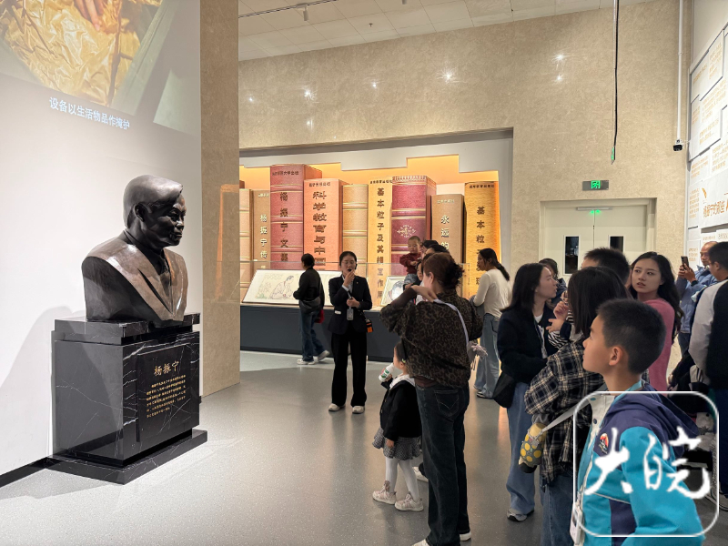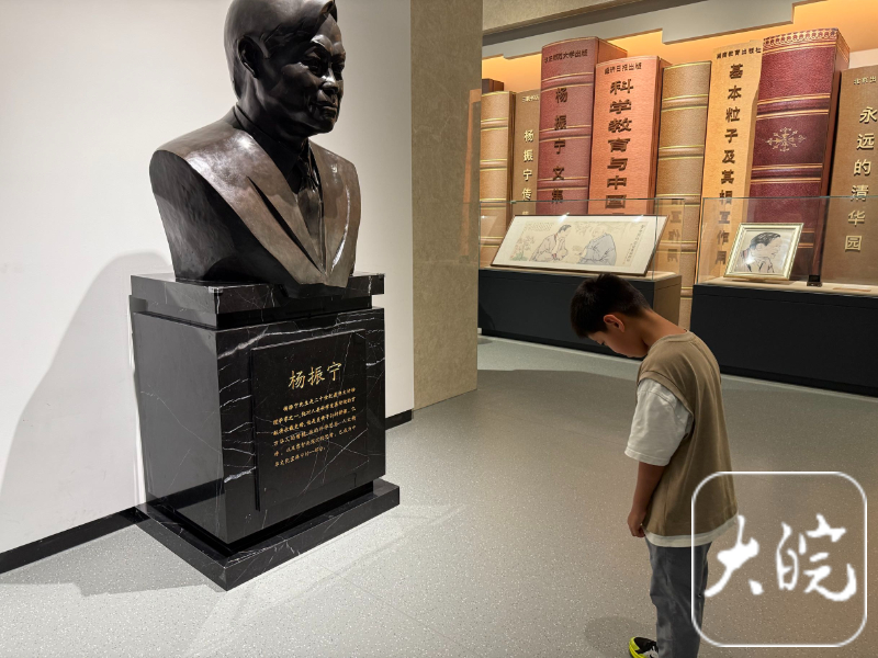 王女士也是在参观过程中得知了杨振宁先生逝世的消息,“我的心情非常沉重,正好带小孩来杨振宁陈列馆了解他的生平事迹,也向他学习,缅怀他。”