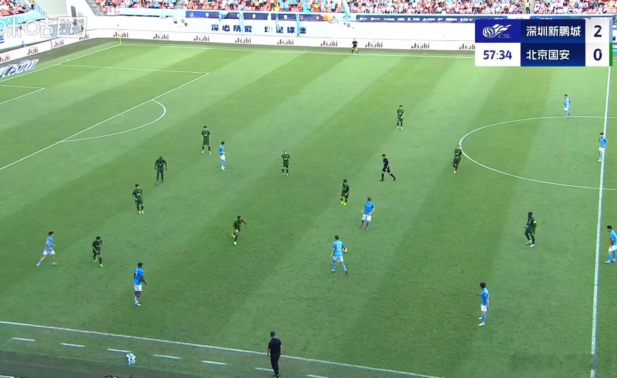 刚才有一幕是韦斯利争顶,身后分别是何宇鹏和方昊,身前是达万,身高差极大。深圳新鹏城vs北京国安中超联赛