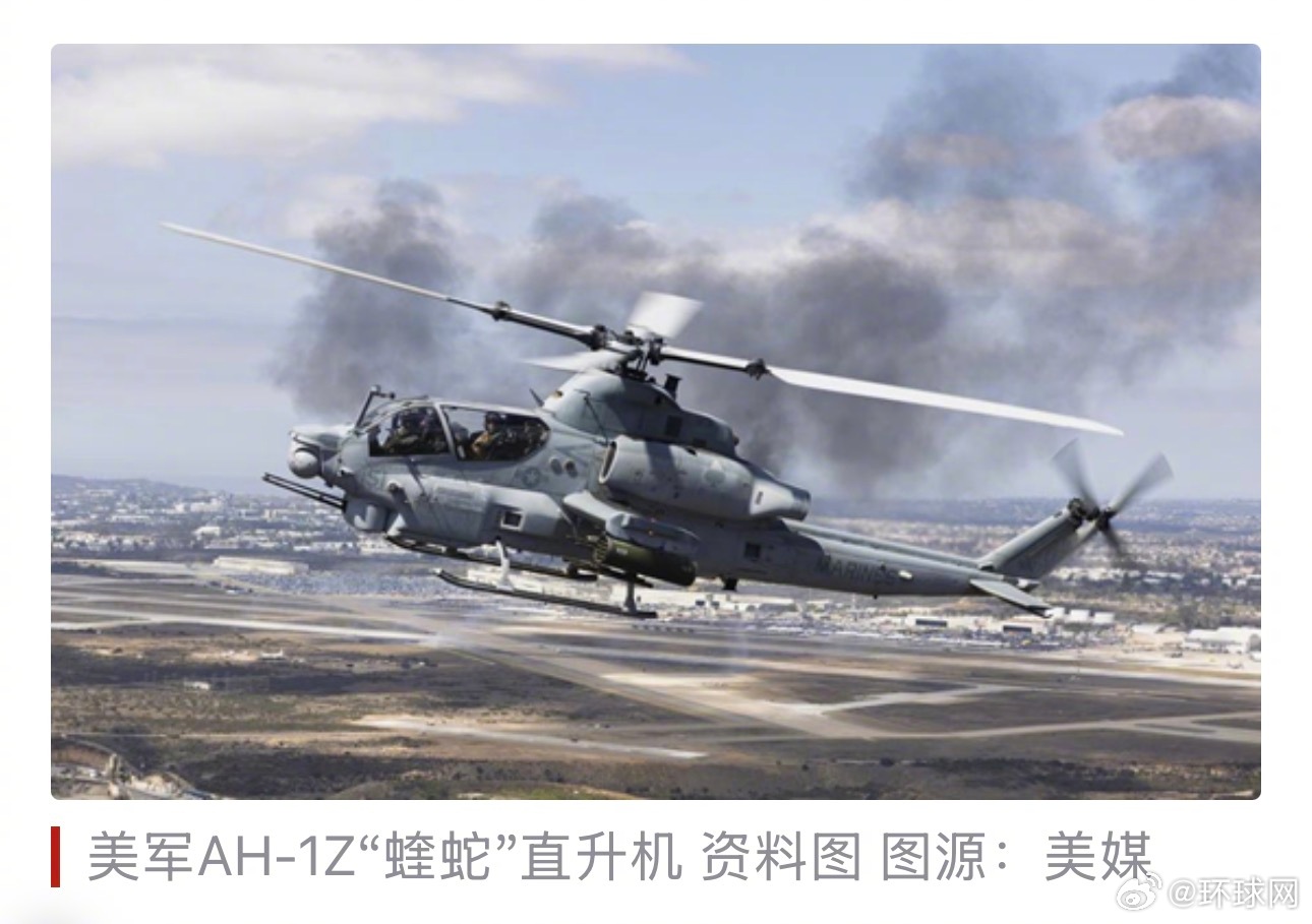 美国《星条旗报》称,美国海军陆战队当地时间17日在一份声明中发布了这一消息。声明称,海军陆战队一架AH-1Z“蝰蛇”直升机在执行例行任务时发生“飞行事故”,一名飞行员死亡,另外一名飞行员受伤。