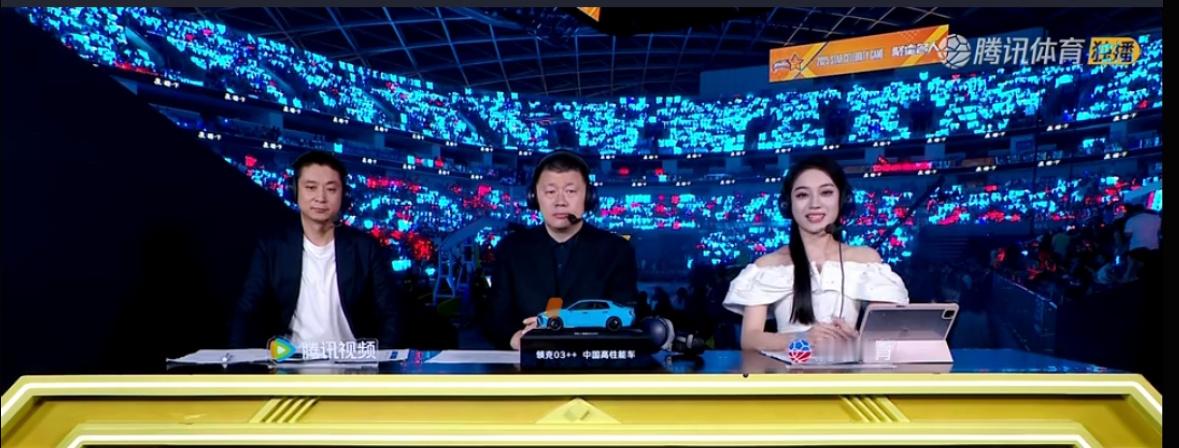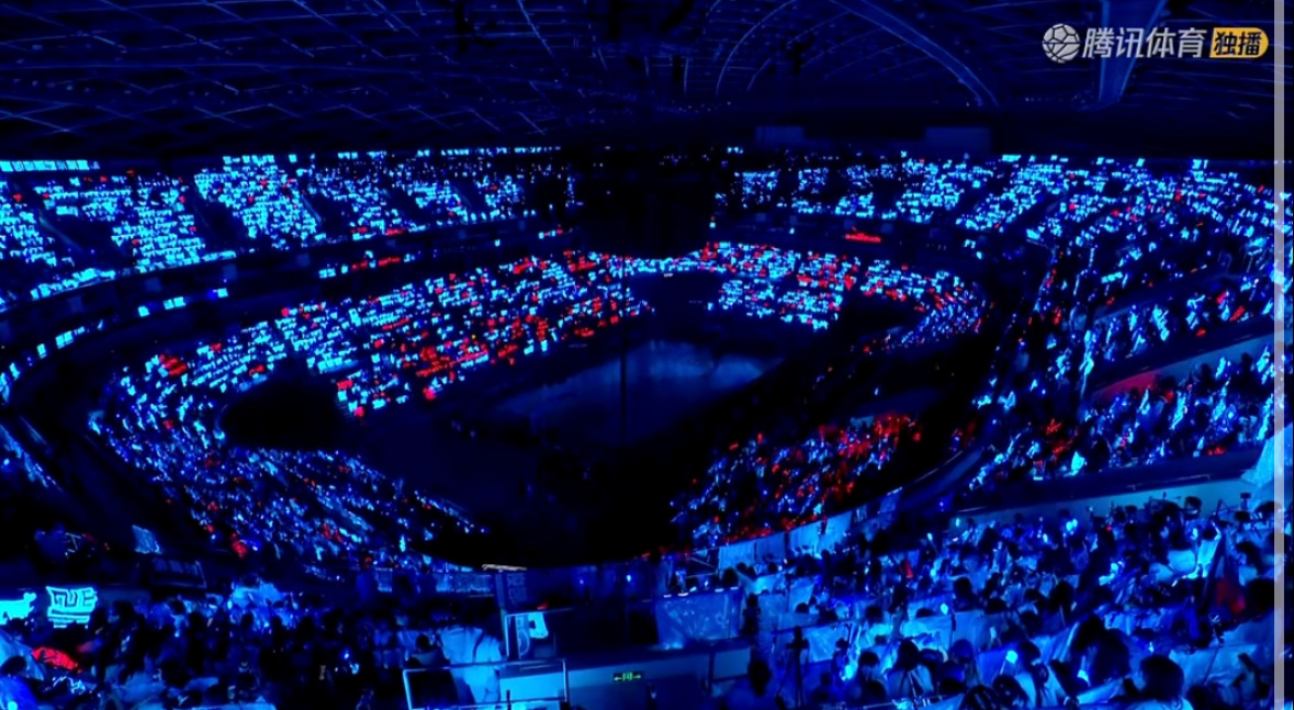 王俊凯和任嘉伦杭州NBA直播全景蓝色和红色粉丝支持🈶️