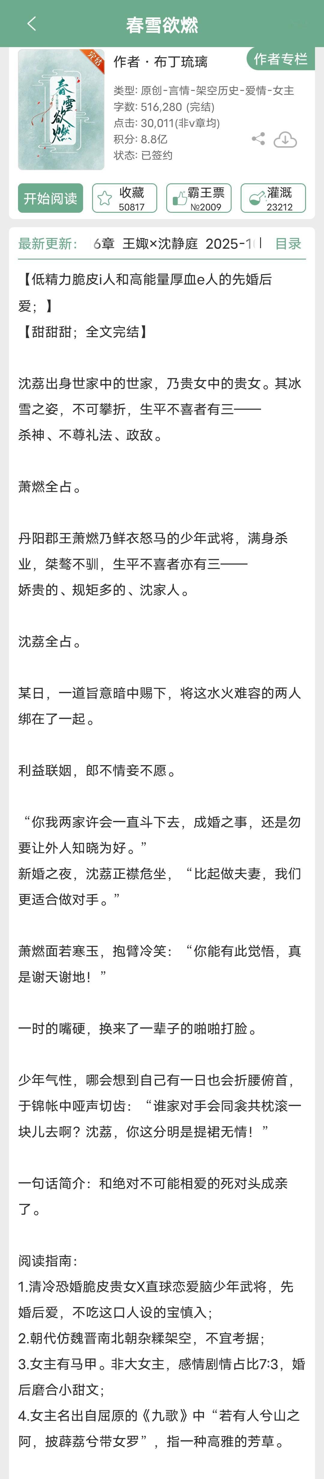 2025年完结的先婚后爱古言小说