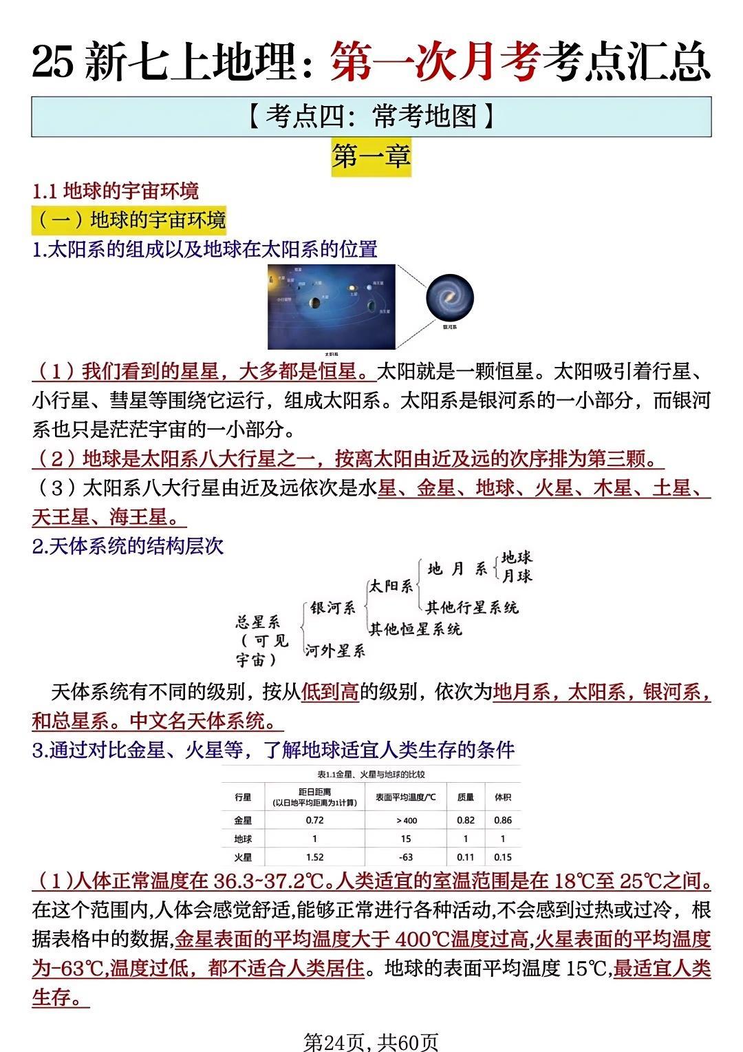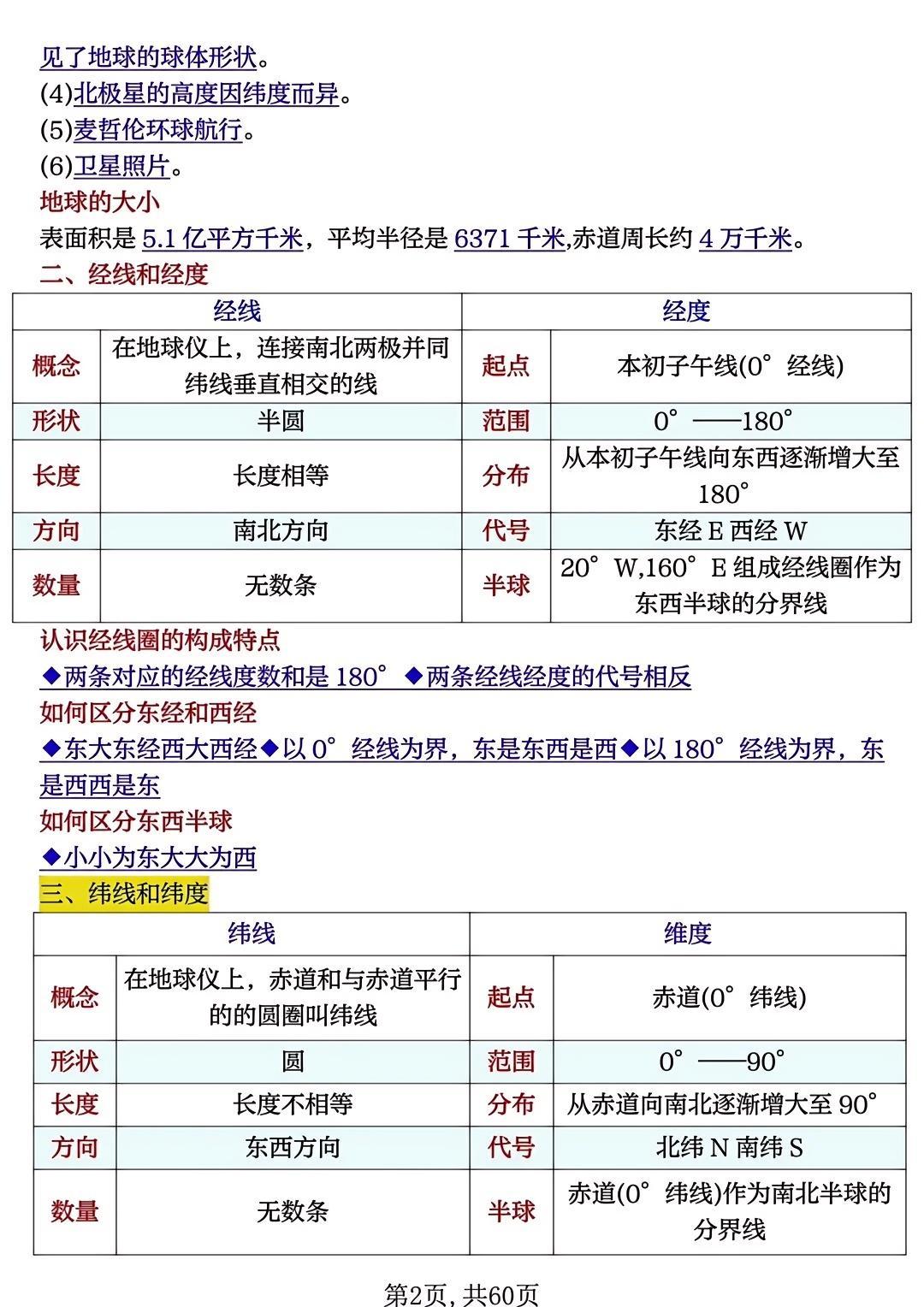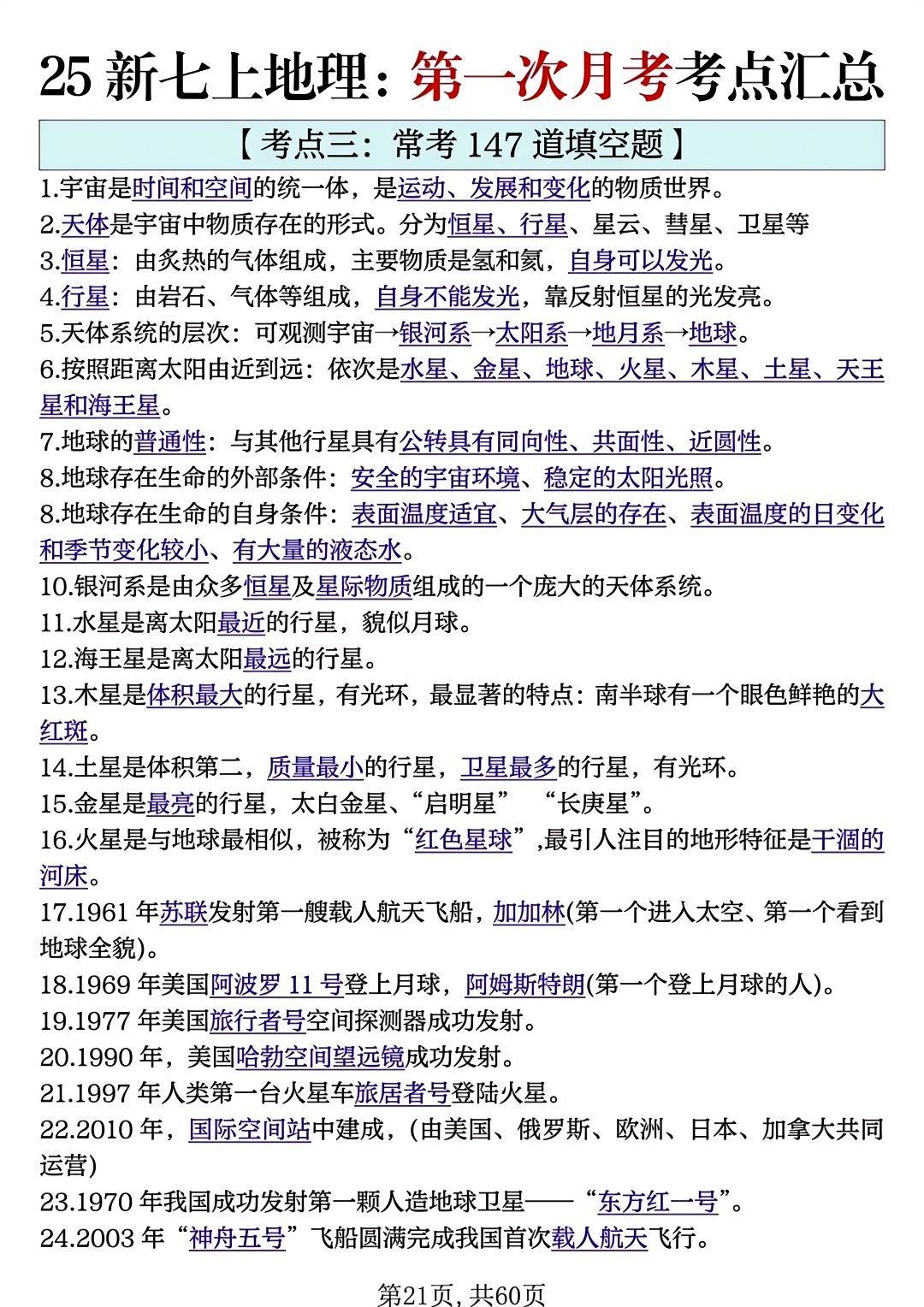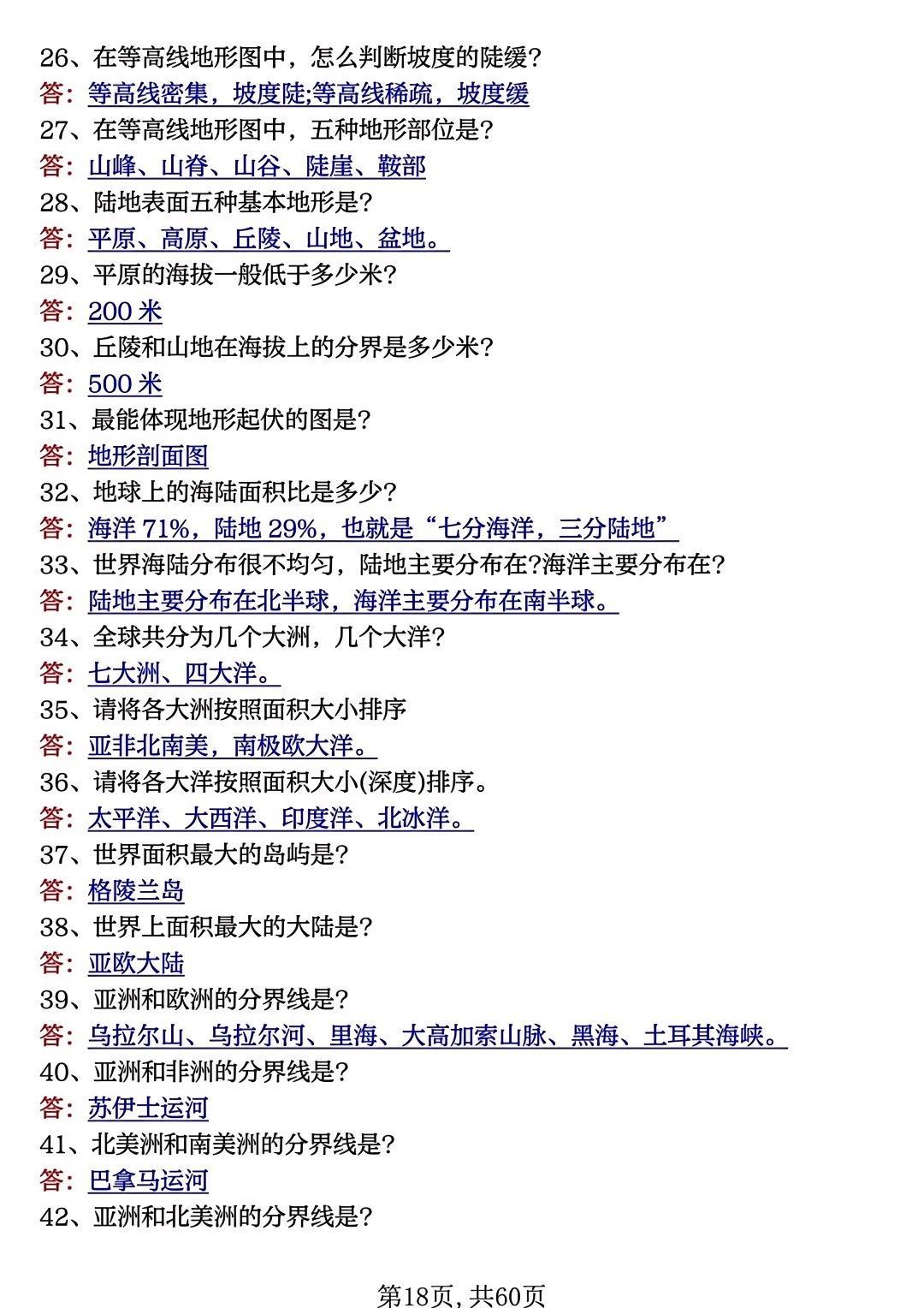 七年级地理上册期中必背高频考点50个!