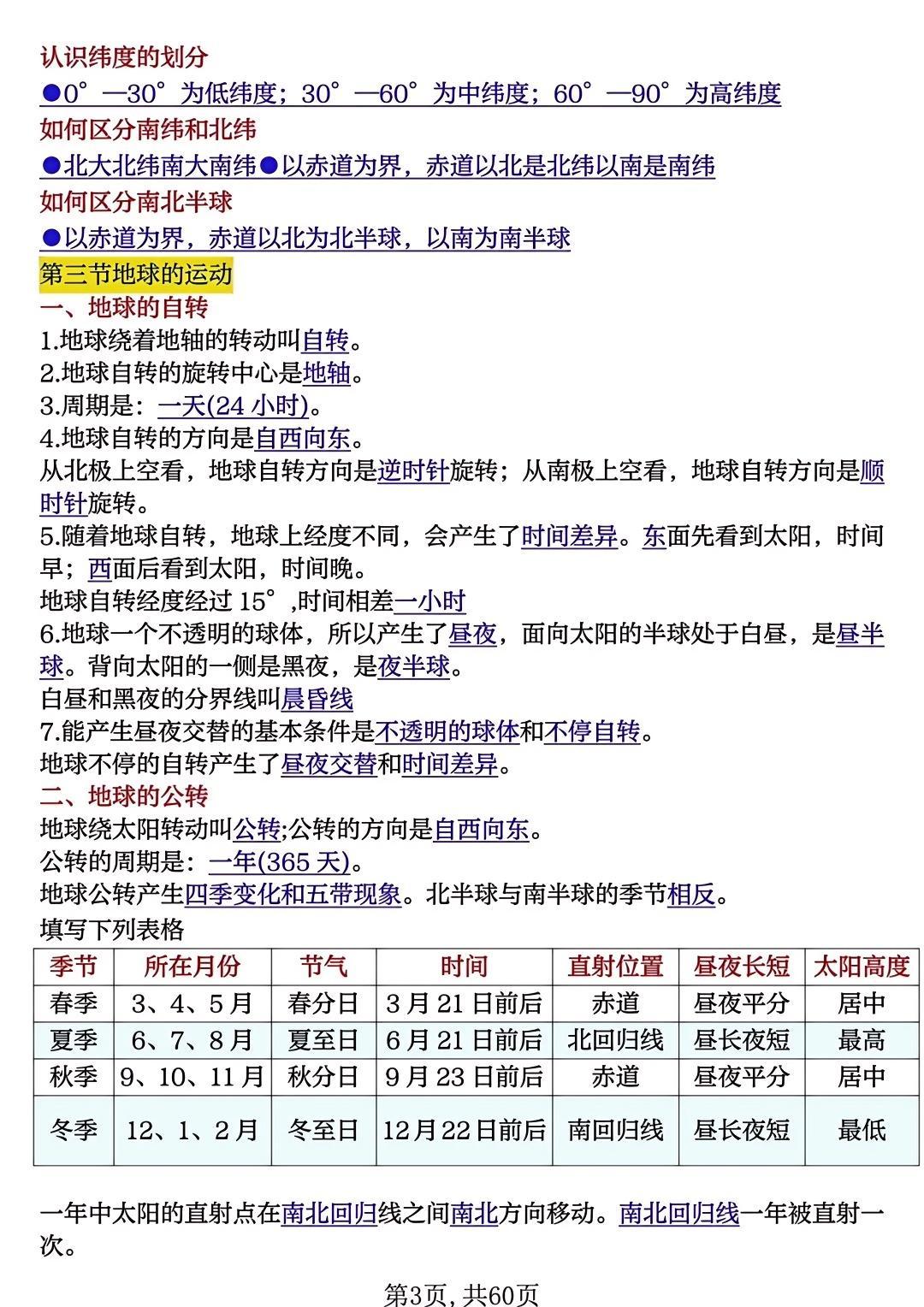 七上地理期中必背知识点填空复习,收藏给孩子吃透了,保管考试一分不丢!