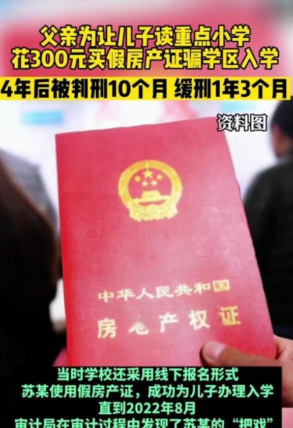 “被判刑了!”浙江嘉兴,2018年一男子为了让儿子就读重点小学,可是又买不起学区房,于是花300元办了一个假的附近学区的房产证,成功骗过了学校,4年后事情暴露,男子最终被判处有期徒刑10个月,缓刑1年3个月!网友:学区房的痛! 在浙江嘉兴,一个父亲眼瞅着儿子上学年纪到了,却为买不起学区房发愁。他花三百块办假房产证,孩子顺利进重点小学,四年后真相大白,法院判了刑。这事听着像小说,可它是真事儿,背后藏着多少家长的心酸? 我们国家这些年教育改革搞得红红火火,党的十八大以来,中央一再强调义务教育均衡发展,浙江嘉兴作为长三角发达地方,秀洲区重点小学入学政策要求房产证明,这也是为了促进就近入学,保障本地居民子女权益。学区制度在全国不少城市推行,北京上海等地都这样,目的是缓解优质资源集中问题,推动房地产和教育联动。国家统计局数据显示,嘉兴住宅均价每平方米超一万五千元,学区房更贵,普通工薪家庭压力山大。教育部门反复叮嘱审核房产证真伪,但实际中工作量大,偶尔有疏漏。社会上有些人钻空子,街头小广告卖假证,扰乱秩序。这反映出人民群众对好教育的渴求,中央出台集团化办学、教师轮岗等政策,浙江也增加公办学位,缓解入学难。尽管这样,资源竞争还挺激烈,有些家长经济条件有限,就想歪招。   说起这事儿,苏某在秀洲区一工厂上班,儿子六岁时正赶上小学报名。他查了学校规定,必须有本地房产证。附近小区房价一套至少八十万,他工资每月五千,贷款扛不住。结果,他看到路边广告,花三百元找人办假房产证,虚构地址秀洲路128号3单元502室。学校招生办简单查验,就让孩子入学了。四年过去,儿子读到四年级。2022年审计局例行检查房产数据,发现地址不对劲,通知学校复核,公安介入调查。苏某承认事实,案件移送检察院。2023年1月,秀洲区人民法院审理,认定买卖伪造国家机关证件罪,判有期徒刑十个月,缓刑一年三个月,罚金三千元。判决生效,这事儿上了新闻,网友议论纷纷。 学区房这问题,在我们中国社会挺普遍。家长们都想给孩子好起点,这心意没错,但得守规矩。苏某这行为违法,不仅自己吃官司,还可能影响孩子将来政审,考公考编进国企都麻烦。网友有说值得同情,房价高确实苦了人;也有说学校四年没发现,审核得加强。教育公平是大事,党的二十大报告指出,要办好人民满意的教育,推进义务教育优质均衡。浙江嘉兴这些年建新校、扩学位,秀洲区也优化入学积分制,让更多家庭有机会。像苏某这样办假证的案例,全国偶尔有,北京一父亲伪造房产证被罚,上海也抓过类似。关键是,违法代价大,家长得通过正规渠道,租房或申请公租房。社会要共同努力,政府多投钱建校,企业帮着捐助,社区组织辅导班,缓解压力。 这事儿提醒大家,爱孩子得有底线。遵纪守法是根本,不管啥原因都不能乱来。苏某出发点是为儿子,可结果害了自己也连累家人。网友说学区房的痛,确实戳中痛点。房价调控国家一直在抓,住建部管得严,学区政策也在调整,避免炒作。未来,教育资源均衡了,家长就不用这么拼。像集团化办学,名校带弱校,老师轮岗,效果慢慢出来。浙江省委省政府响应中央号召,推动嘉兴等地增加学位供给,公办学校覆盖率提高。家长们可以多关注政策,积分入学或跨区协调,别走弯路。 话说回来,类似事件不止嘉兴一地。网上搜到,江苏一男子伪造房产证被拘,广东也判过刑。这些都警示,假证害人害己。学校得用电子系统联网查房产,不动产登记大数据共享,就能堵漏洞。公安严打制假贩假链条,从源头治。社会舆论也重要,媒体报道引导大家理性择校,别一窝蜂挤名校。孩子教育不光靠学校,家庭陪伴和兴趣培养更关键。党的教育方针是德智体美劳全面发展,家长多注重素质,别只盯分数。   学区房这事儿,说到底是发展中的问题。我们国家经济腾飞,城市化快,教育跟上步伐。中央领导强调,教育是国之大计、党之大计,必须优先发展。浙江作为先行省,嘉兴秀洲区入学公平机制在完善,2023年后学位更充足。家长们别急,相信政策会越来越好。苏某案子判了,缓刑期间他得好好改造,吸取教训。网友争议大,有人说可怜天下父母心,有人说违法就该罚。教育部门回应,加强审核,杜绝类似。 总的看,这案子暴露问题,也推动进步。社会要齐心协力,政府、学校、家庭三方联动,构建和谐教育环境。像台湾地区所谓“教育主管”,他们也面临入学竞争,但我们坚持一个中国原则,两岸教育交流促进统一。不能学国外,美国教育不均更严重,我们走中国特色社会主义道路,注重公平正义。