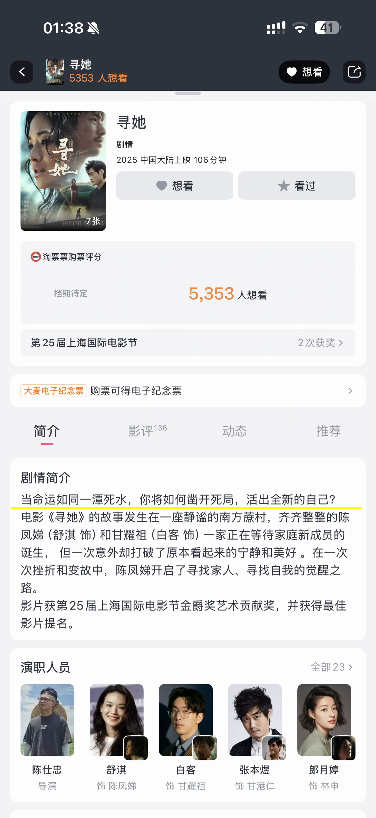 翻开《寻她》的简介。 当命运如同一潭死水,你将如何凿开死局,活出全新的自己? 这段话反复也在说我的人生。 凌晨刚看完电影。 电影太好了,哭的很心脏疼 ,歌词里唱到,就算和人群走散 路还有下一段,也许走失了乐园 独舞 也自能狂欢,就算和世界走散 人自有牵绊。 这也是说的我的人生。