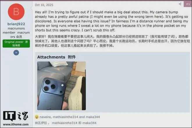 太阳下晒成“玫瑰金”?iPhone 17 Pro被曝褪色,星宇橙配色首当其冲 刚入手的新机竟能“自动变色”?10月18日,科技媒体GSMArena披露,多名iPhone 17 Pro及Pro Max首批用户反映设备出现机身褪色问题,“星宇橙”和“深蓝色”两种热门配色成重灾区,引发全网热议。 用户反馈显示,褪色现象有着清晰的蔓延轨迹:首先从凸起的相机岛区域开始变淡,随后逐步扩散至整个铝合金机身边框。有用户晒出对比图,刚用不到两周的“星宇橙”机型,相机岛边缘已褪成浅金色,与背部完好的哑光玻璃面板形成刺眼色差;更有用户调侃,把手机放太阳下晒一会儿,就能“免费升级”成独特的“玫瑰金”版本。 “阳光下放了没多久就变样了,根本没磕没碰。”一位欧洲用户的吐槽道出了不少人的困惑。对于原因,用户们普遍将矛头指向紫外线,但科技分析师提出不同看法:问题或源于阳极氧化工艺缺陷。由于新配色需特殊涂层实现高饱和度,相机岛区域因结构复杂可能存在涂层厚度不均,加上铝合金边框的氧化保护层密封不完全,长期暴露后便会发生颜色改变。 值得注意的是,iPhone 17 Pro系列此次回归航空级铝合金机身,取代了前代的钛金属材质,虽兼顾了轻盈与强度,却意外陷入质量争议。此前该系列已因划痕问题引发关注,如今褪色风波再至,让消费者质疑其工艺可靠性。 目前,苹果客服仅回应“正常使用不会褪色”,建议用户送售后检测,却未给出明确排查方案,官方也未公开回应此事。有媒体推测问题可能局限于特定批次,但褪色范围与根源仍不明确,不少用户呼吁苹果尽快给出说法并提出解决方案。