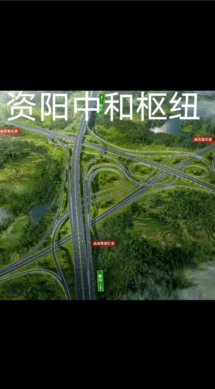 成渝大通道,成渝高速四川段4改8扩容项目重点控制工程成都的龙泉山隧道,资阳的沱江特大桥和资阳中和“超级枢纽”正在加速建设中,全线预计2028年底建成通车,届时资阳中和枢纽或将成为四川最大的高速枢纽(图二为效果图),中和枢纽是在已有的S3成资渝高速和S40广洪高速互通的基础上再增加一条八车道的成渝新高速,中和枢纽将新增加744根墩柱,建设难度大,成渝高速四川段全长约190公里,其中部分路段与内江绕城高速共线扩建,全线大部分路段为新建复线,部分路段为两侧加宽拼接方式,新成渝高速建成通车后,成都开车来往内江和重庆等地的时间将比走老成渝高速节省30分钟以上,节假日车流量大易拥堵缓行的情况将不复存在,对比旧成渝高速最显著的区别就是又宽又直。