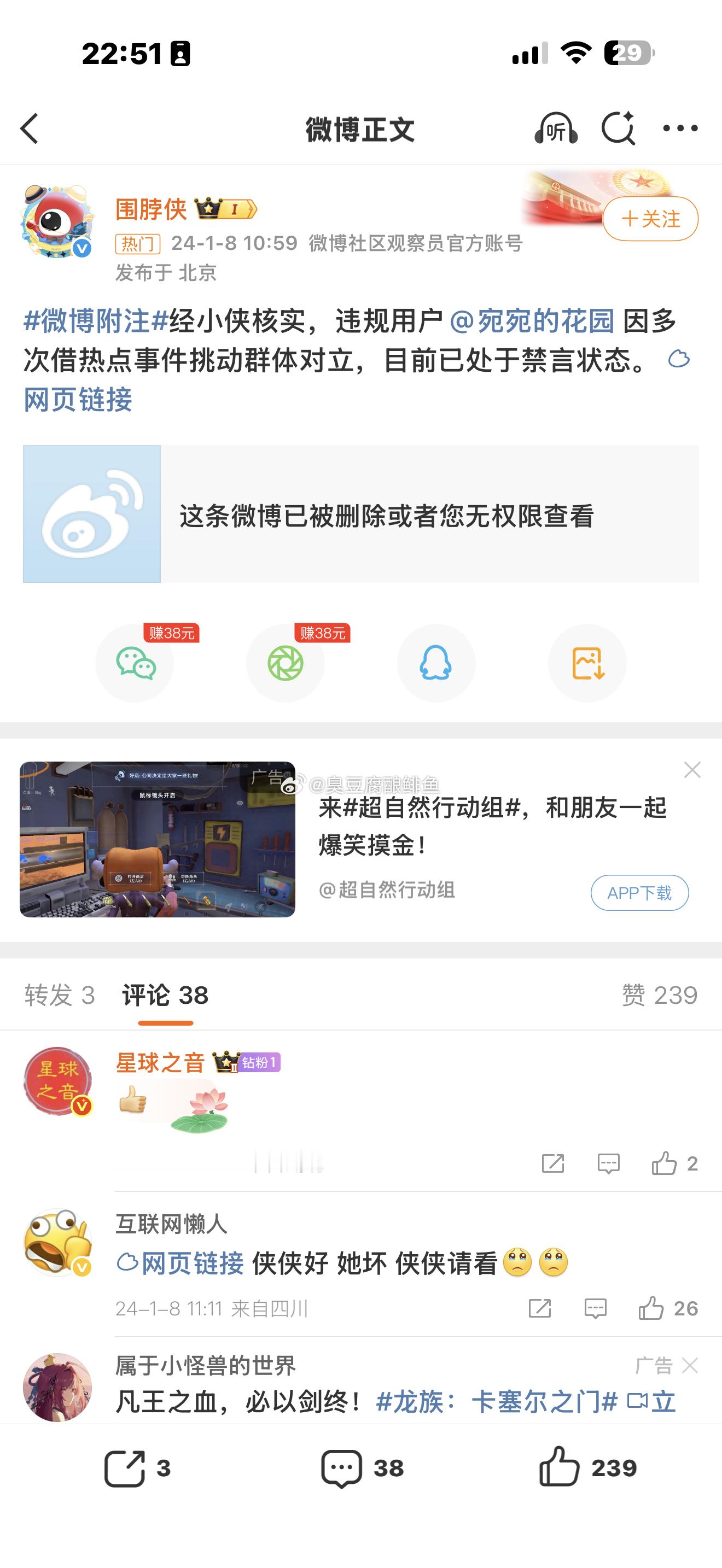 一个博主,不知成分,造谣国士,毫无态度。这符合所谓的清朗行动的目标嘛?
