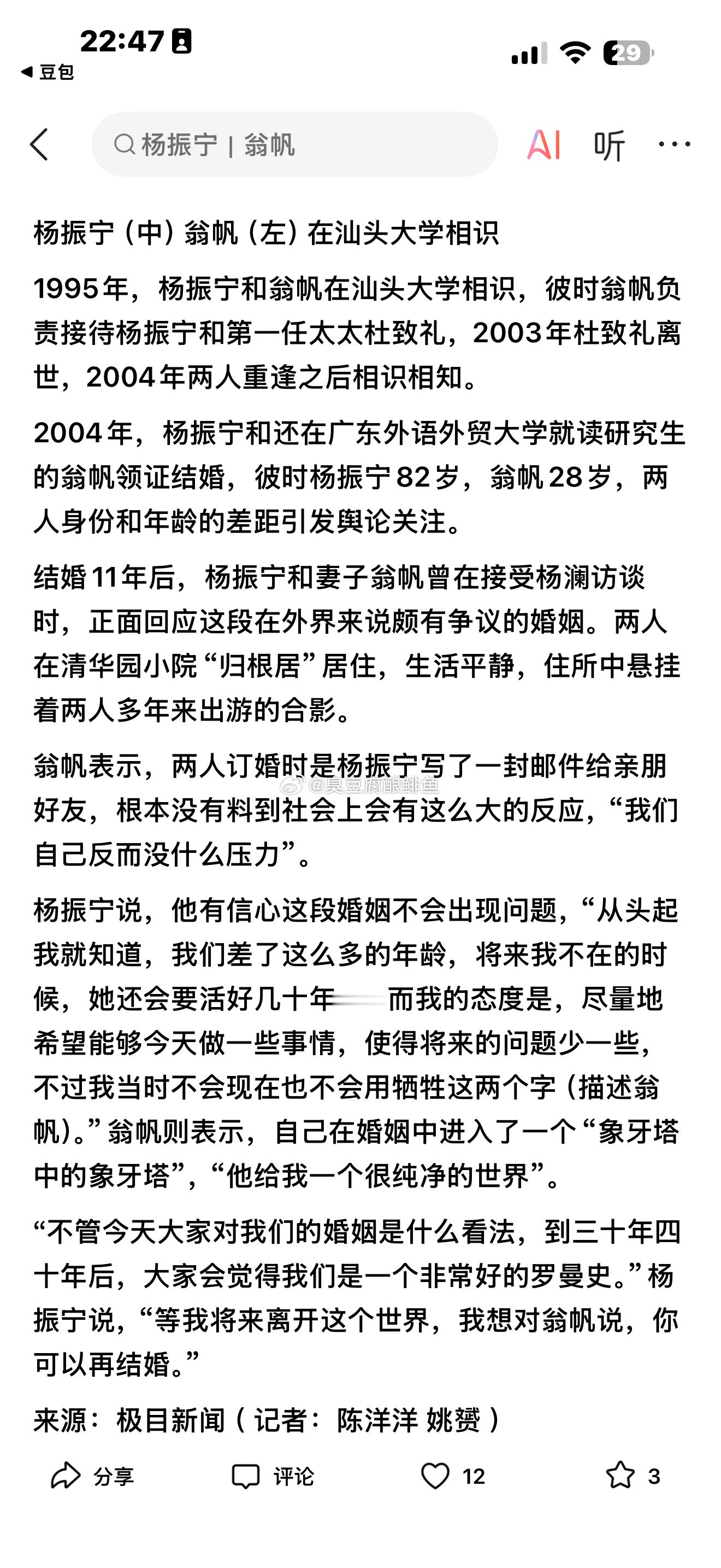 杨振宁逝世女博主造谣杨振宁翁帆为什么她们要造谣杨振宁?原因很简单这样就可以把一