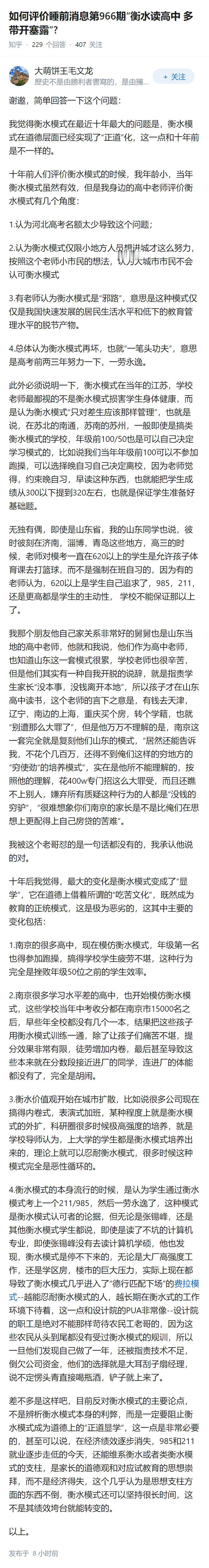 如何评价睡前消息第966期“衡水读高中 多带开塞露”?