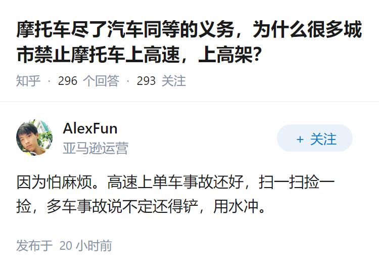 摩托车尽了汽车同等的义务,为什么很多城市禁止摩托车上高速,上高架?