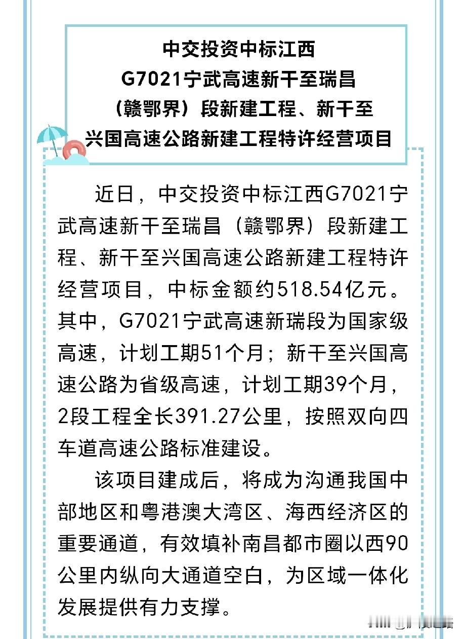 好消息,江西新干至兴国、新干至瑞昌高速公路已开启设计先行阶段。 近日,中铁设计院的江西新兴高速外业勘察项目部在项目现场举行了隆重的授旗仪式,并慰问了坚守在新干至兴国、新干至瑞昌高速公路一线的勘察设计人员。 G7021宁武高速新瑞段属于国家级高速,计划工期51个月,即需4年零3个月方可建设通车。新干至兴国高速公路为省级高速,计划工期39个月,要3年零3个月才能建成通车。 新瑞高速公路要比新兴高速公路晚一年建成通车。