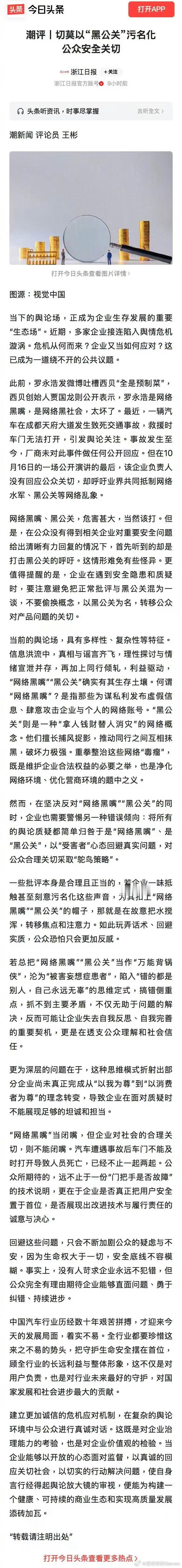 浙江日报评论「切莫以“黑公关”污名化公众安全关切」