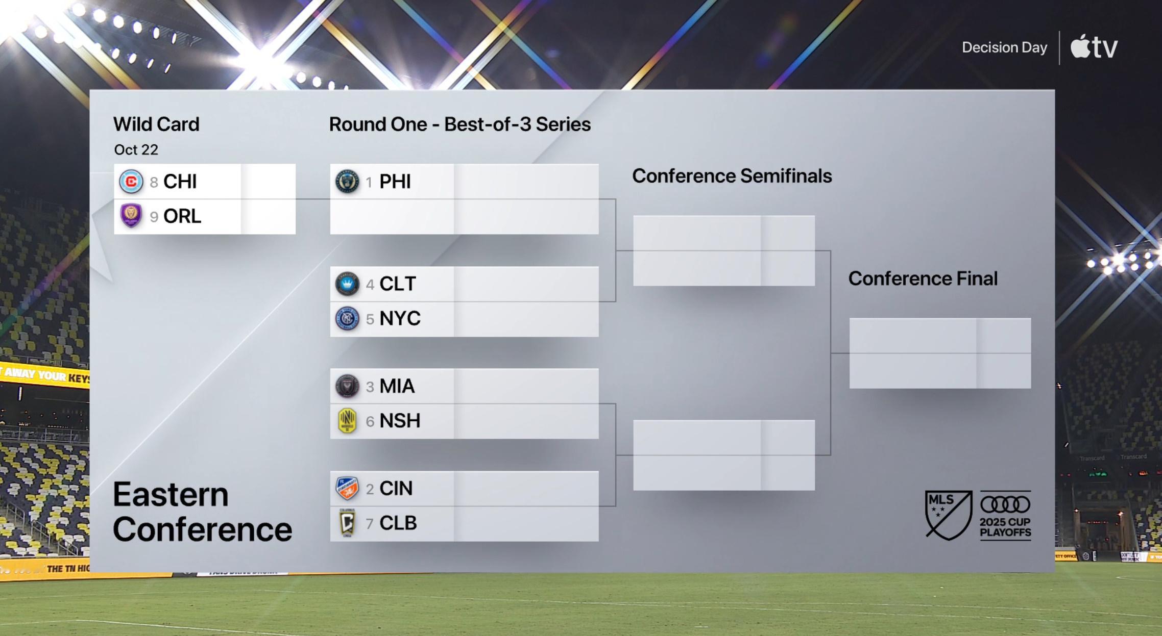 季后赛首轮是三局两胜制,迈阿密国际拥有主场优势(主/客/主);