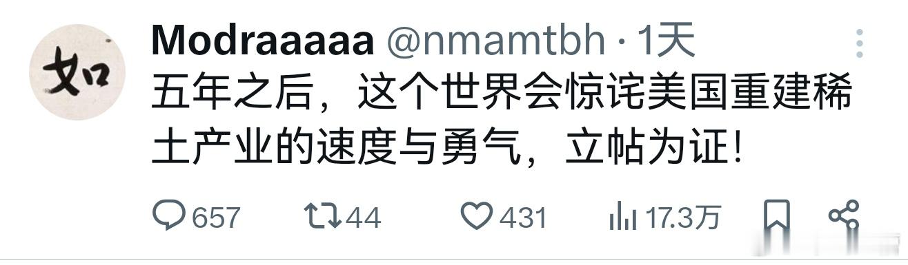 立帖为证,五年后,这个世界会惊诧美国重建稀土产业的速度和勇气[笑cry][笑cr
