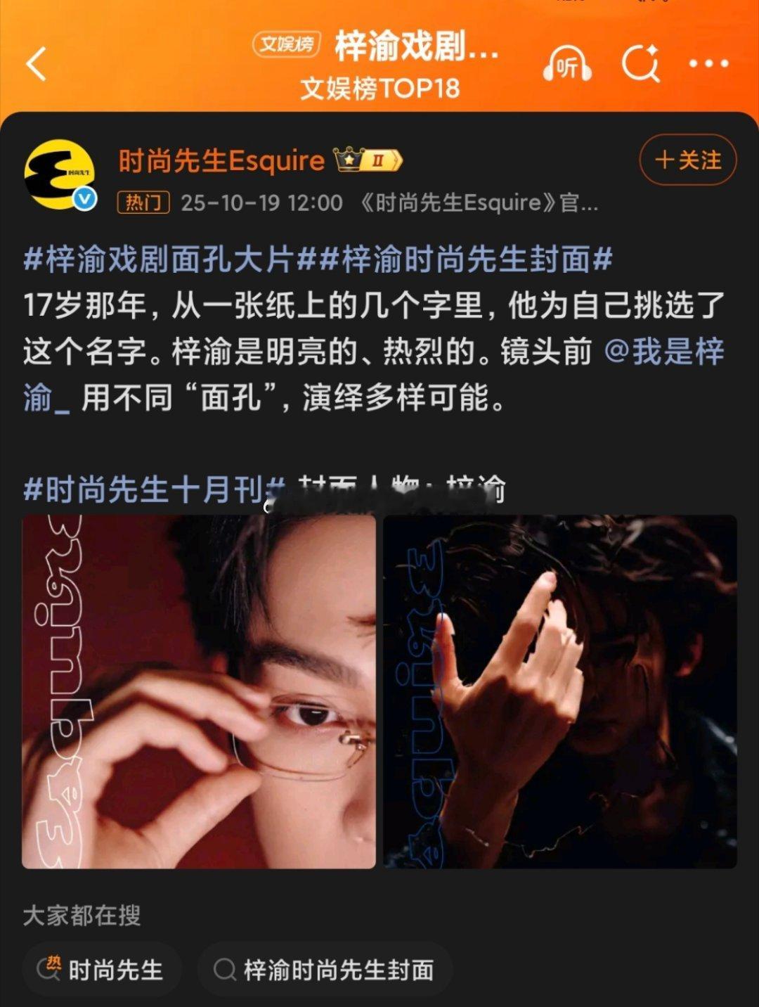梓渝这次《时尚先生》银十封面的待遇什么水平?