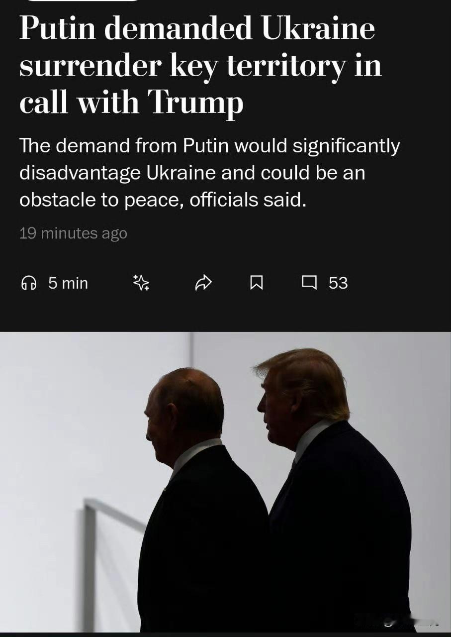 普京为特朗普提出结束战争的条件本周,克里姆林宫主人普京在与美国总统特朗普的