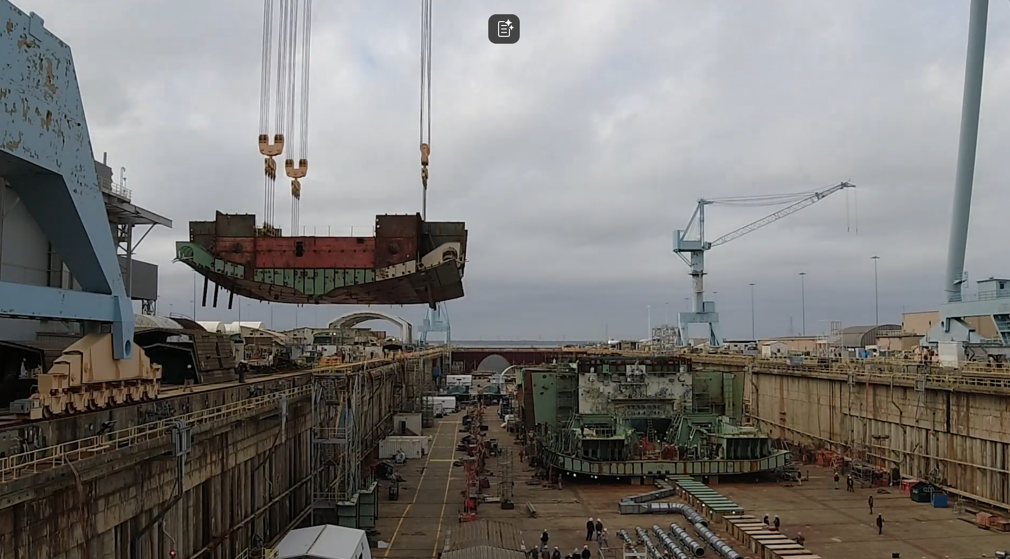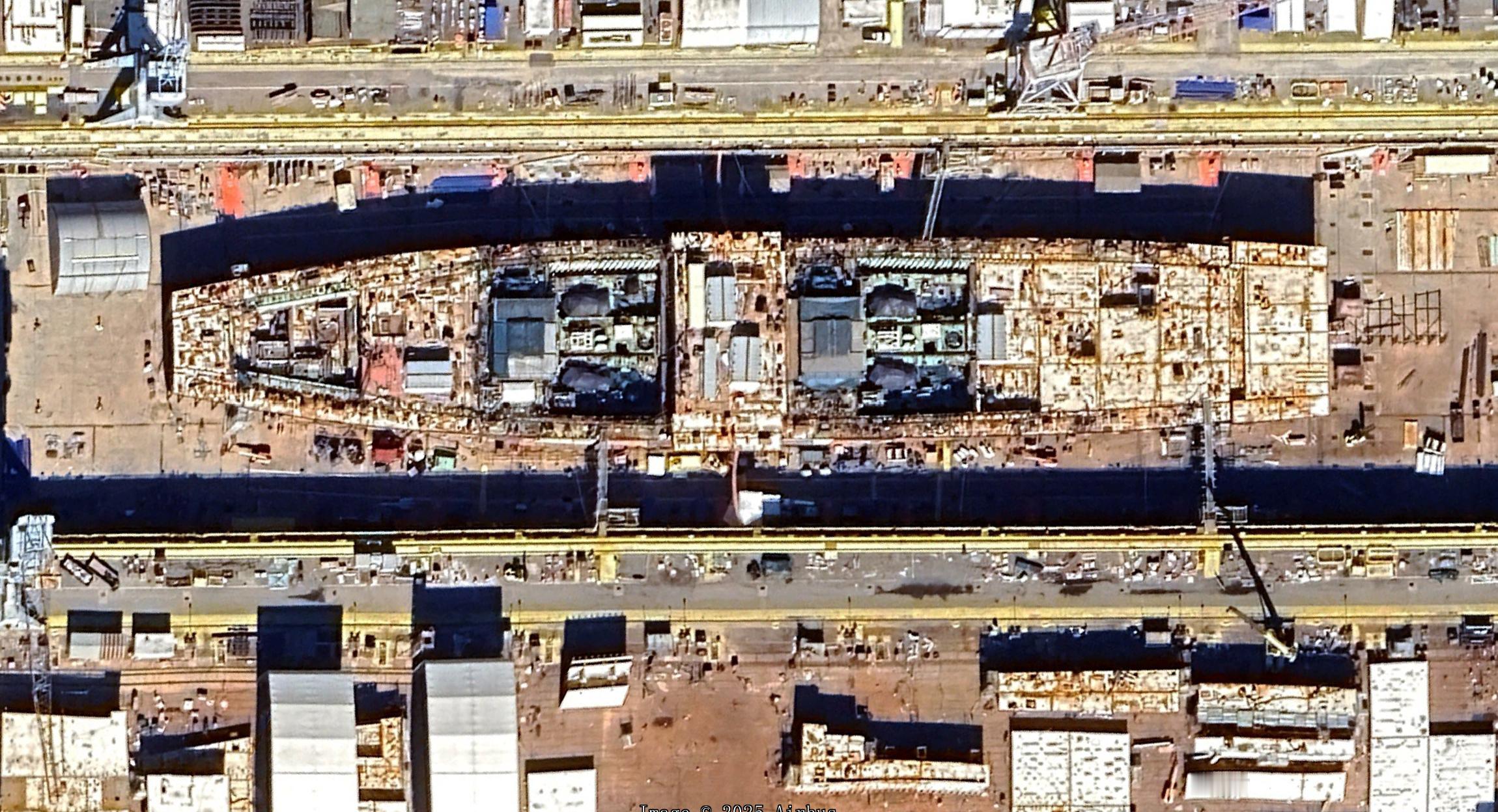 堆舱-动力舱会在船体完全合拢后的很长一段时间内仍然保持敞开状态,而堆舱动力舱的的前-后舱段则会尽早封顶+上盖。新航母前部动力舱的前一分段早已完成了封顶+上盖,预计后动力舱的后向各分段在安装到位后也会尽早封顶
