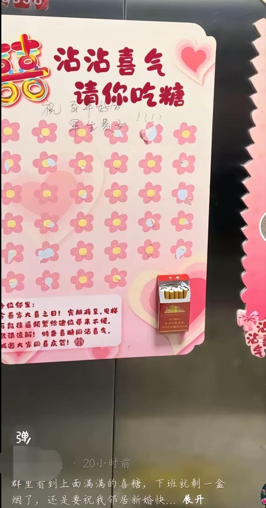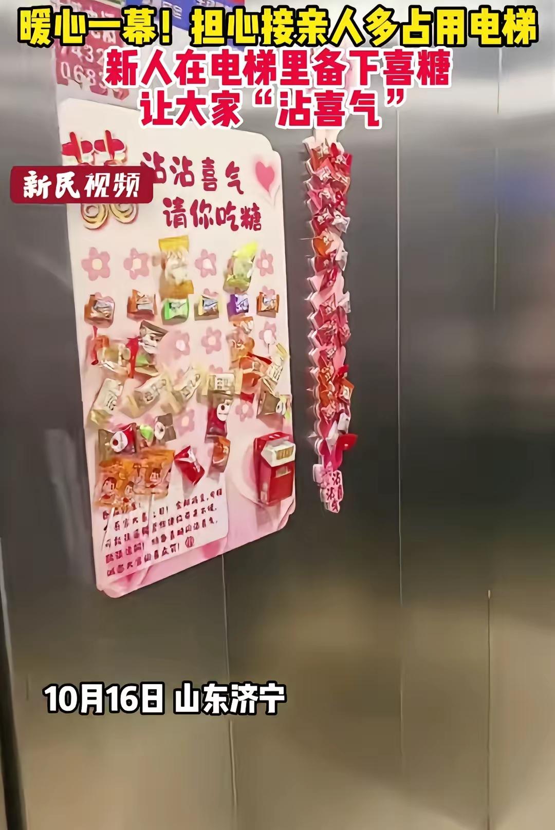 这则暖心的故事展现了邻里之间温馨的人情味和互相关怀的美好场景。在山东济宁,一位居民为了表达喜悦和善意,特意在电梯里放置喜糖和喜烟,并贴上祝福的贴纸,邀请邻居们一同沾沾喜气。这种小小的举动不仅传递了喜悦,也打破了城市中常有的疏离与冷漠,彰显了邻居之间的互助与温暖。 网友们对此纷纷点赞,认为这样的细节体现了高素质的教养和善意。有的人认为买房选择与善良的人为邻会让自己变得更好,有的人则被邻居的用心感动,觉得这份温暖值得学习。即使在快节奏的都市生活中,这样的仪式感依然能拉近邻里间的距离,让“冷漠的墙”变得更加柔软。 这件事告诉我们,生活中的点滴善意都能带来温暖。一个小小的喜糖、一句祝福,可能就成为邻里之间坚固的纽带。我们也可以向他们学习,用一些简单的方式,把关心和祝福传递给身边的每一个人,让城市里的每个角落都充满人情味与温暖。 让我们从身边做起,用心去关怀和分享,让邻里关系更加和谐美好。毕竟,温暖不仅仅是大事,更藏在我们每一个细微的行动中。人间温暖故事