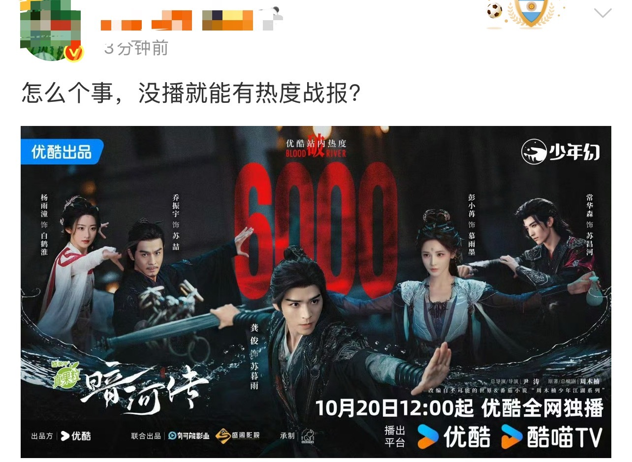 笑麻了,有没有可能是暗河传预告太好看了呢?明天中午一起来优酷看看!30w云包场!400w预约!预告6000热度! ​​​