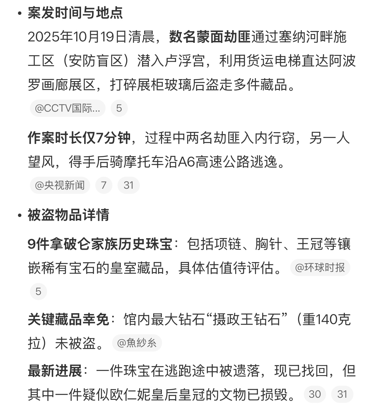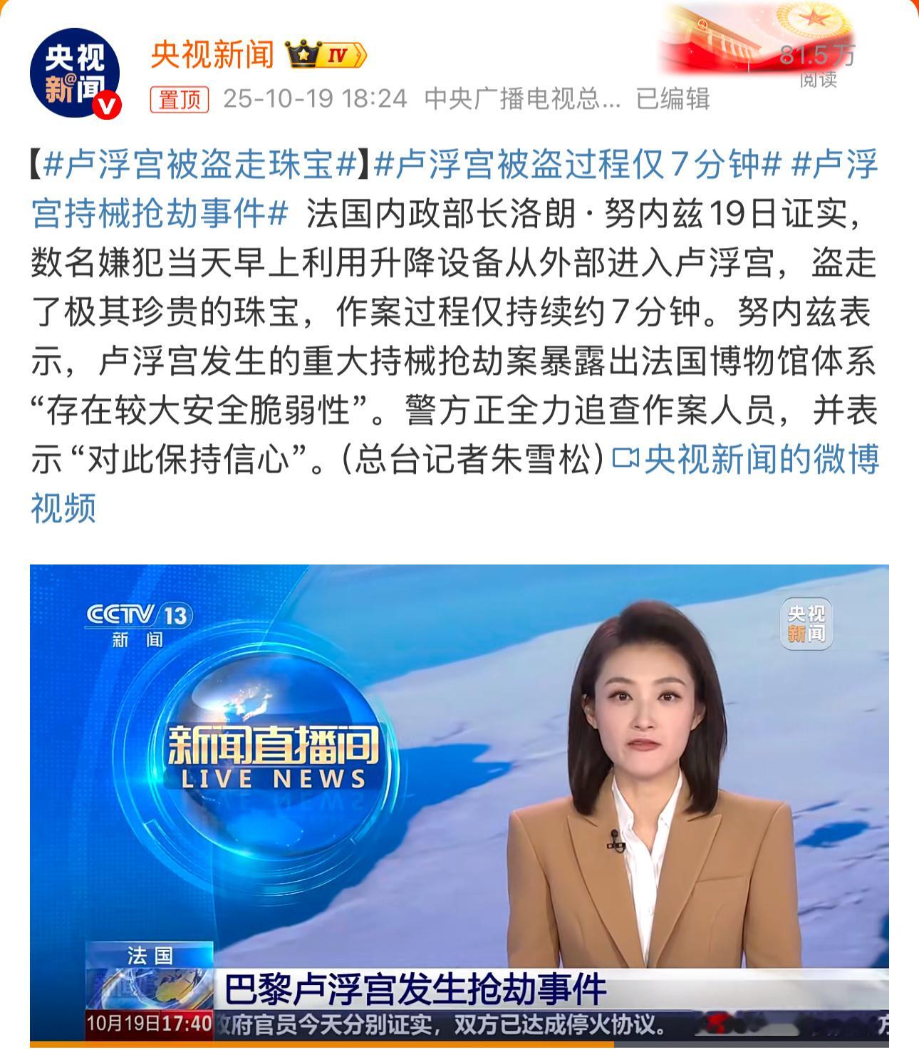 卢浮宫多件藏品被盗卢浮宫被盗过程仅7分钟
