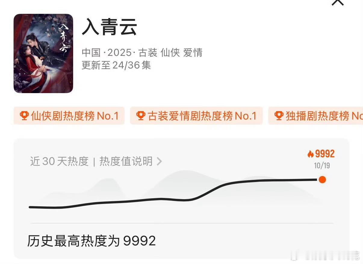 侯明昊卢昱晓入青云热度现在9995了!离破万只差5[点赞]最近走势非常不错啊,看过的来说说好看吗[来]