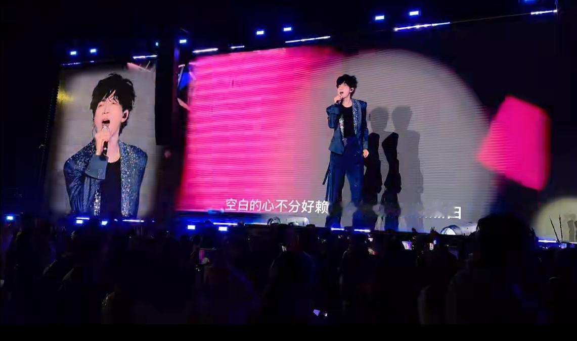 扬州枣林湾音乐节陈楚生压轴! 今晚的音乐节上生哥唱嗨了。 顶着一头卷毛,穿着黑色