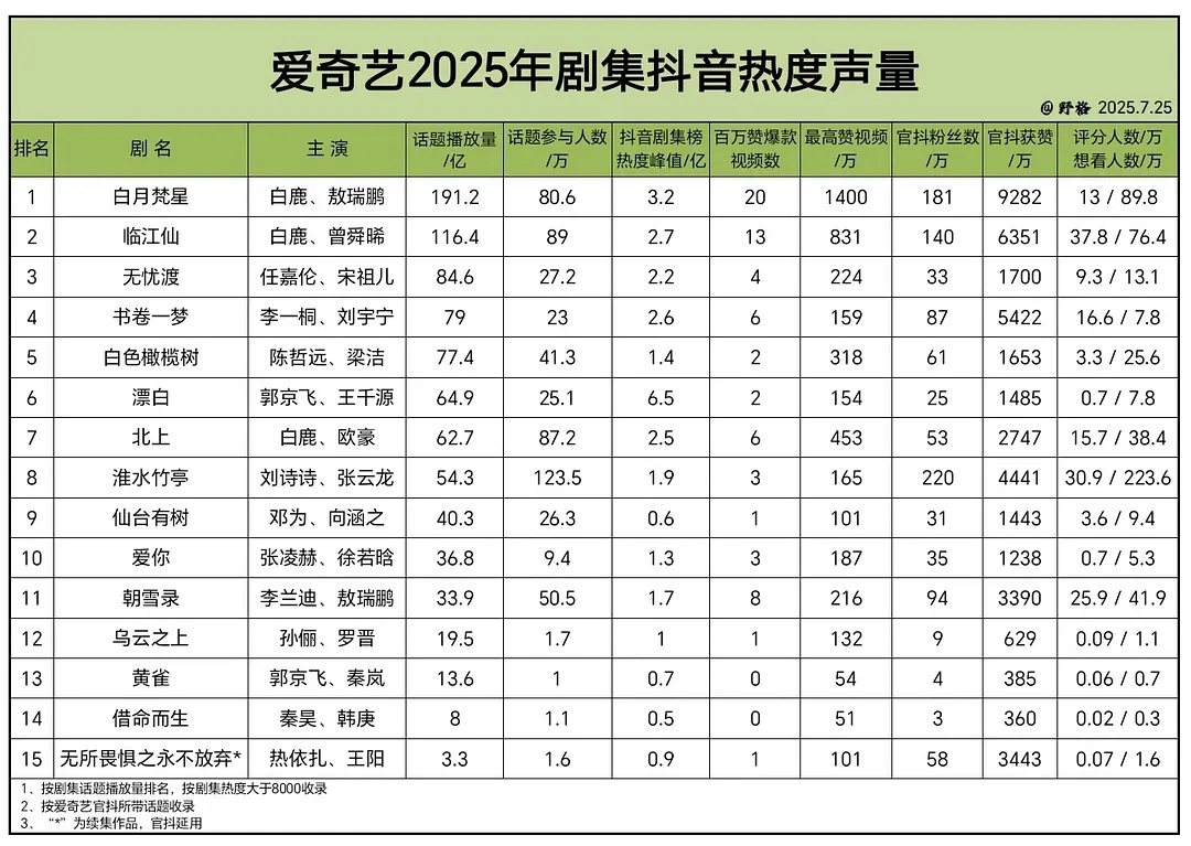 反正白鹿播一部火一部。一部北上直接拿下央视史季收视率CVB901。出道仅9年,累计云合330亿播放量。扛剧扛招商扛收视率,绝对称得上90扛剧花top之一。90花的四个档次