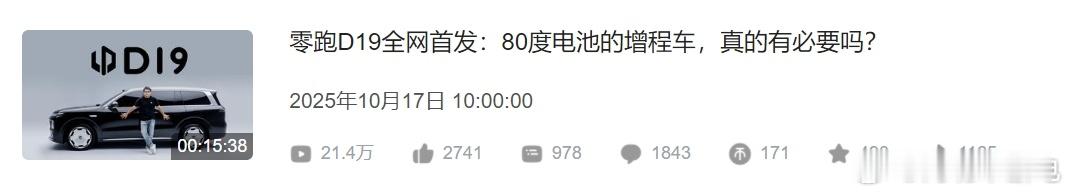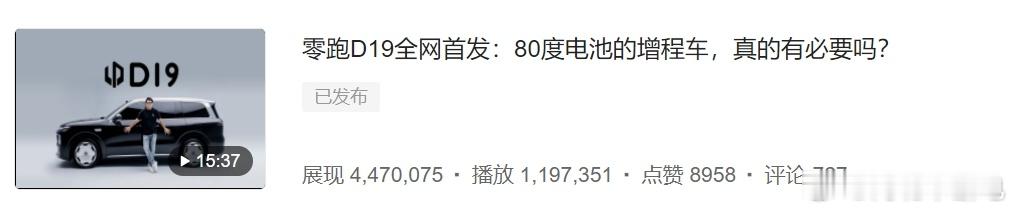零跑D19那条视频很多平台都爆了,全网真实流量大概超过了500万,我翻看了很多评论和弹幕,发现一个有趣的现象