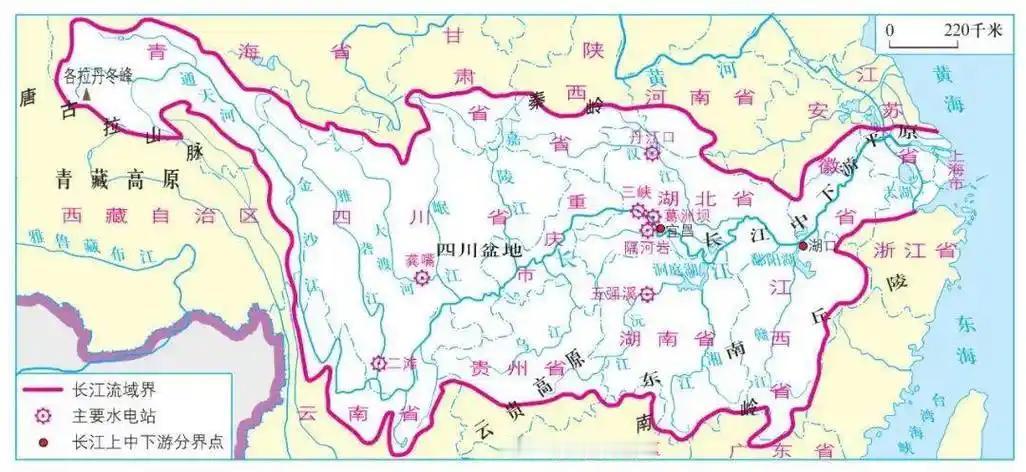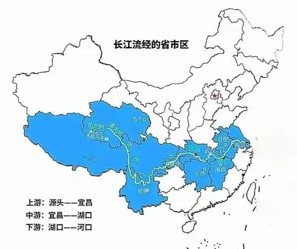 黄河流经的省份有9个,青海、四川、甘肃、宁夏、内蒙古、陕西、山西、河南与山东,九个省份都是既有黄河干流,也有黄河的支流。长江流经的省份也不一样,干流流经11个省份:青海、西藏、四川、云南、重庆、湖北、湖南、江西、安徽、江苏和上海,另外还有多达5个省份有支流经过,明显的有甘肃省(岷江、嘉陵江)、陕西(嘉陵江、汉江)、河南(汉江)、贵州(乌江)、浙江(太湖水系)和广西(湘江),不明显的还有福建和广东,也有细枝末节的长江支流,等于长江干支流流经省份多达19个!