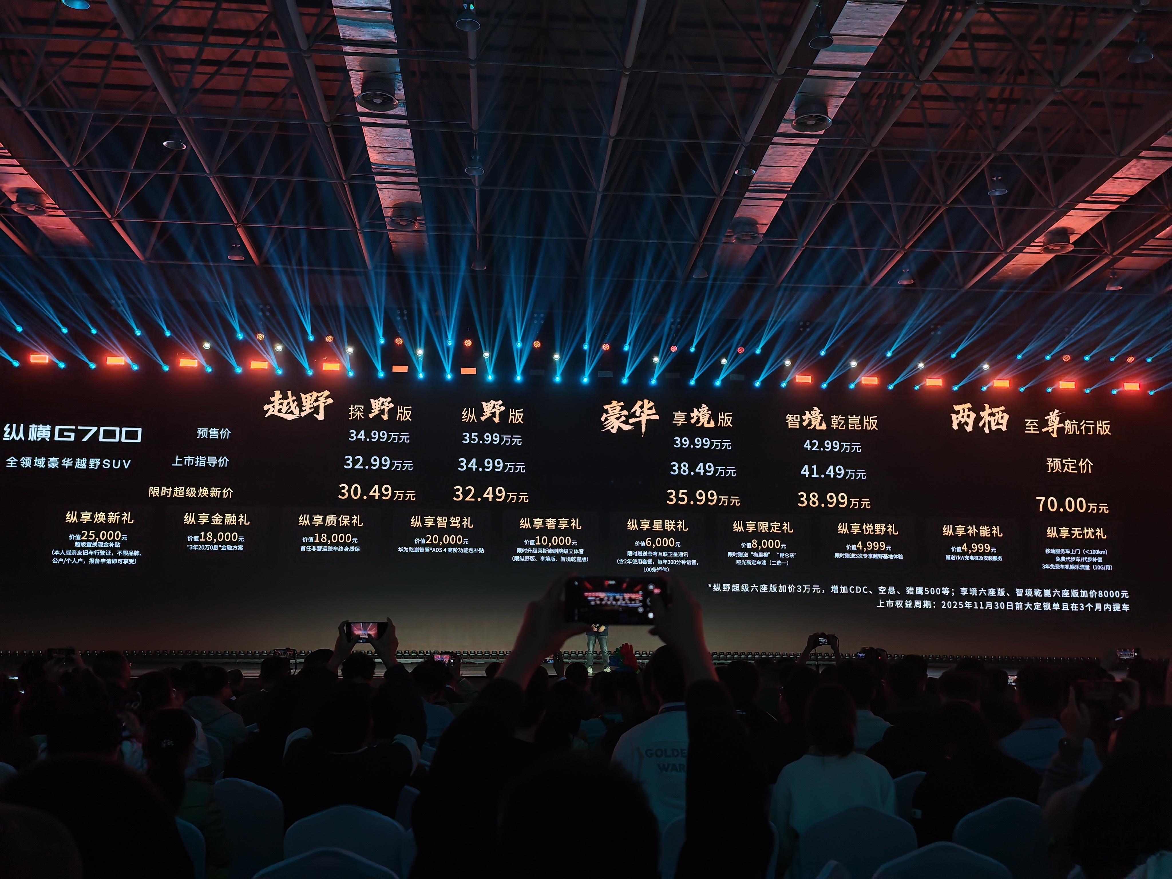 纵横G700价格出炉,30.49万起,选华为乾崑的版本,不敢想会有多舒服。[捂嘴哭]