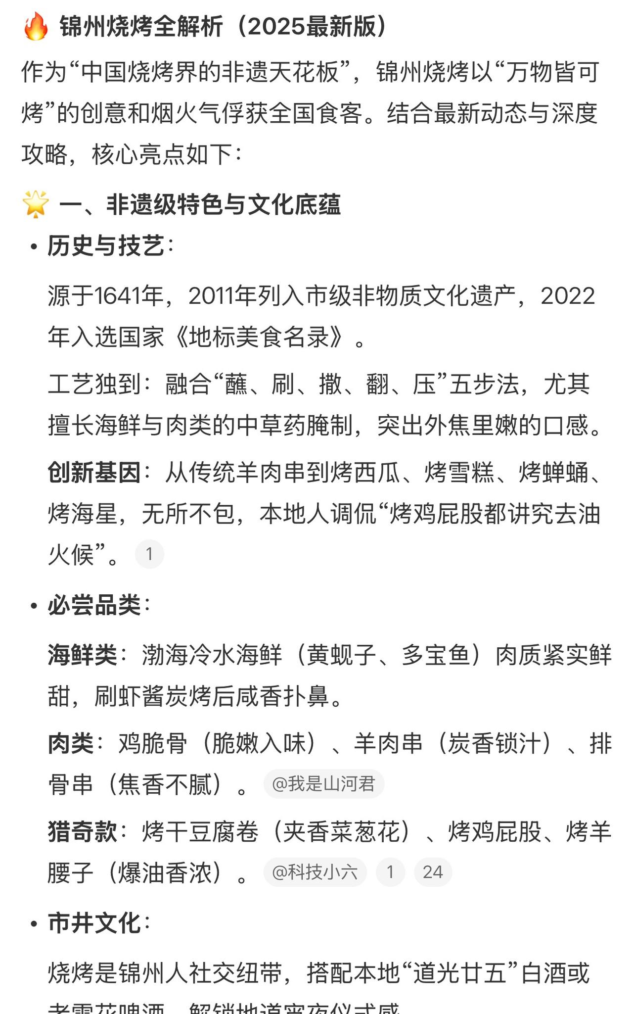 不看不知道,原来锦州烧烤还是非物质文化遗产呢,看得我都好想吃😋这波热度锦州也是