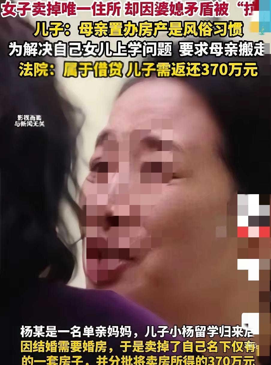 有儿子的和没儿子的人都要沉默了!刷到这新闻我真是气不打一处来,这哪是养儿子,分明是养了个“白眼狼”! 北京这位单亲妈妈多不容易,为给儿子凑350万婚房,把自己住了大半辈子的老家房子都卖了。她满心欢喜,想着以后跟儿子儿媳住一起,能帮衬着过日子,压根没指望儿子多孝顺,只求不被嫌弃。 结果住进去没俩月,婆媳间因为生活习惯磕磕绊绊。本以为儿子能从中调和,没想到这小子彻底“娶了媳妇忘了娘”,直接让亲妈搬出去。更寒心的是,搬出去后微信电话全被拉黑,亲妈成了“陌生人”。 这哪是对错的问题,简直是没良心!其实根本不是婆媳矛盾无解,是儿子没担当,更没教会他感恩。父母倾其所有不是义务,别让自我牺牲养出不懂回报的巨婴。你们说,养孩子到底是该倾尽所有,还是得留点心眼?