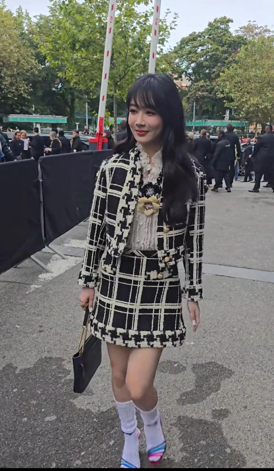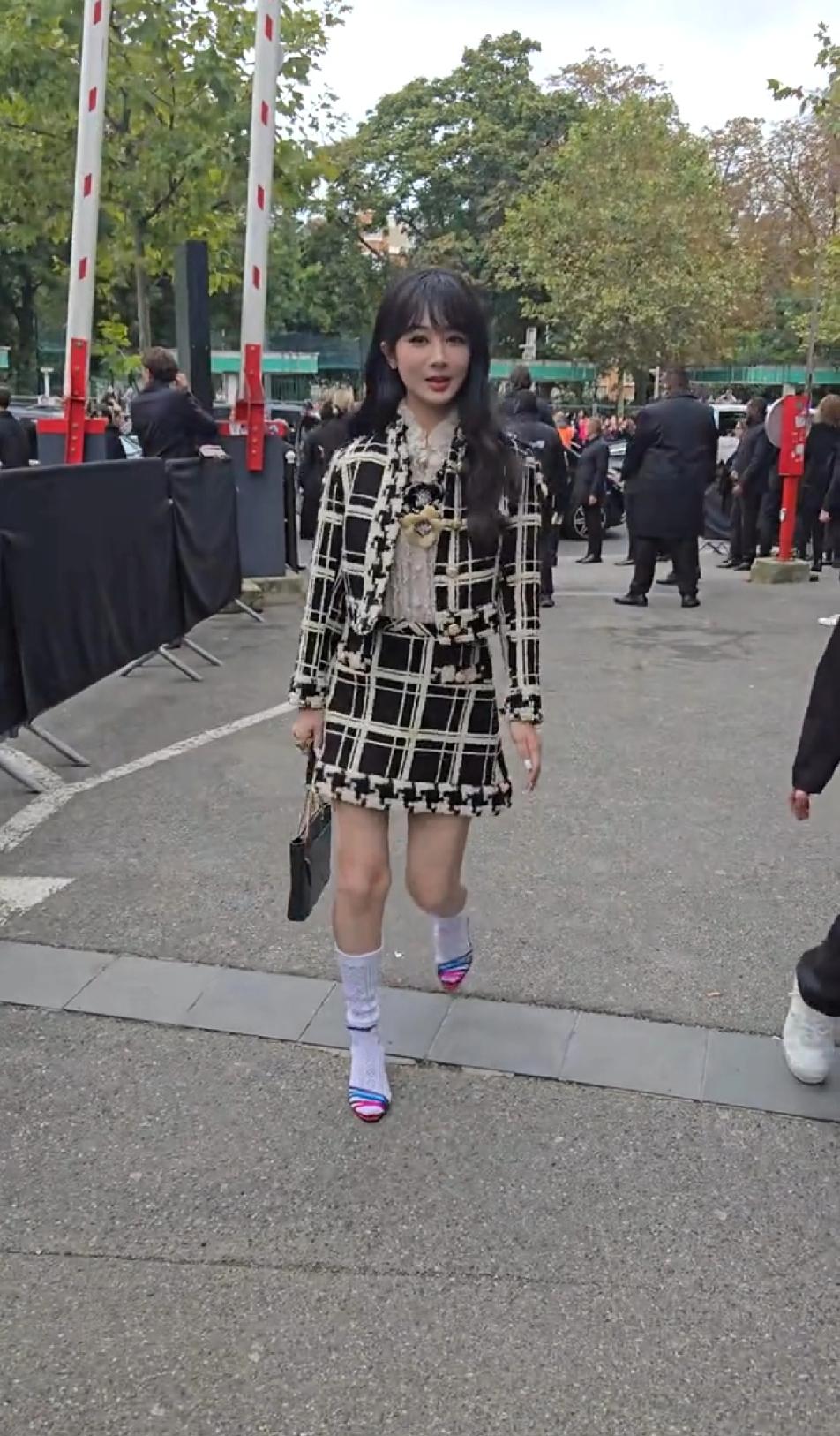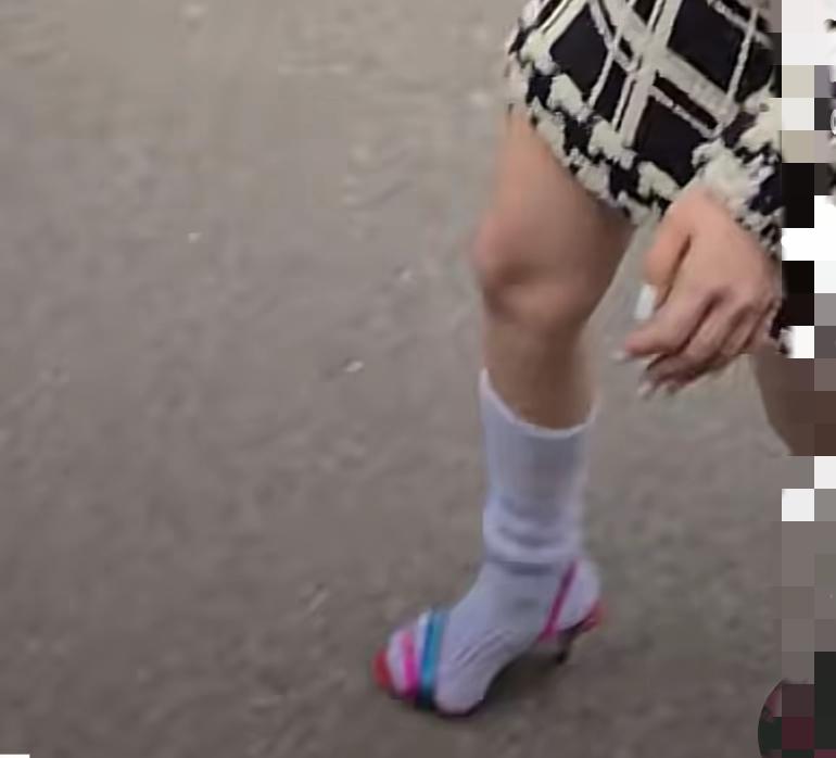 从杨紫脸上一点看不出她忍了那么大的痛,本来就看不懂一身黑色套装为何穿一白色袜子配一粉色高跟鞋,再看杨紫这脚,都从鞋子里挤出来了,大拇指这样卡着走路真得疼死,可以说每走一步都够艰难了,杨紫硬是带着笑容优雅的走下来,看不懂为什么要配这个颜色的鞋子,更看不懂还在里面加双袜子?!