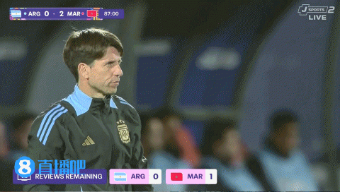 直播吧10月20日讯世青赛决赛,阿根廷U20国家队0-2不敌摩洛哥U20,无缘世青赛冠军。本届世青赛VAR使用“挑战制”,每队有两次机会。本场比赛下半场,阿根廷两次使用VAR挑战机会,最终都没有获得点球!